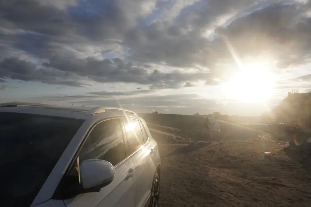 早上定了 5:40 的闹钟,天还是黑的,考虑安全打了贵点的车,看到师傅是党员,开的是红旗车,心里稍稍放心了些。上车后师傅也比较健谈,说自己孩子也会去看日出,但都没去过我定位的地方。快到目的地,路灯也没了,黑乎乎的海边,我有些慌,这跟想象的不一样。只有两三辆车亮着车灯,停在海边,我下车,头上的帽子险些被吹掉,要一个人孤零零的在这等日出吗?太可怕了。