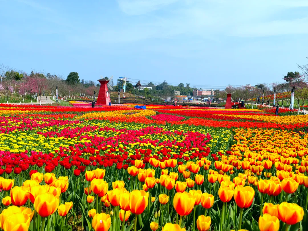数万株郁金香竞相绽放,红的热烈、粉的温柔、黄的明媚。清晨薄雾中,花香沁人心脾;午后阳光下,随手一拍都是朋友圈爆款,情侣打卡、亲子留影皆相宜,定格春日限定美好~