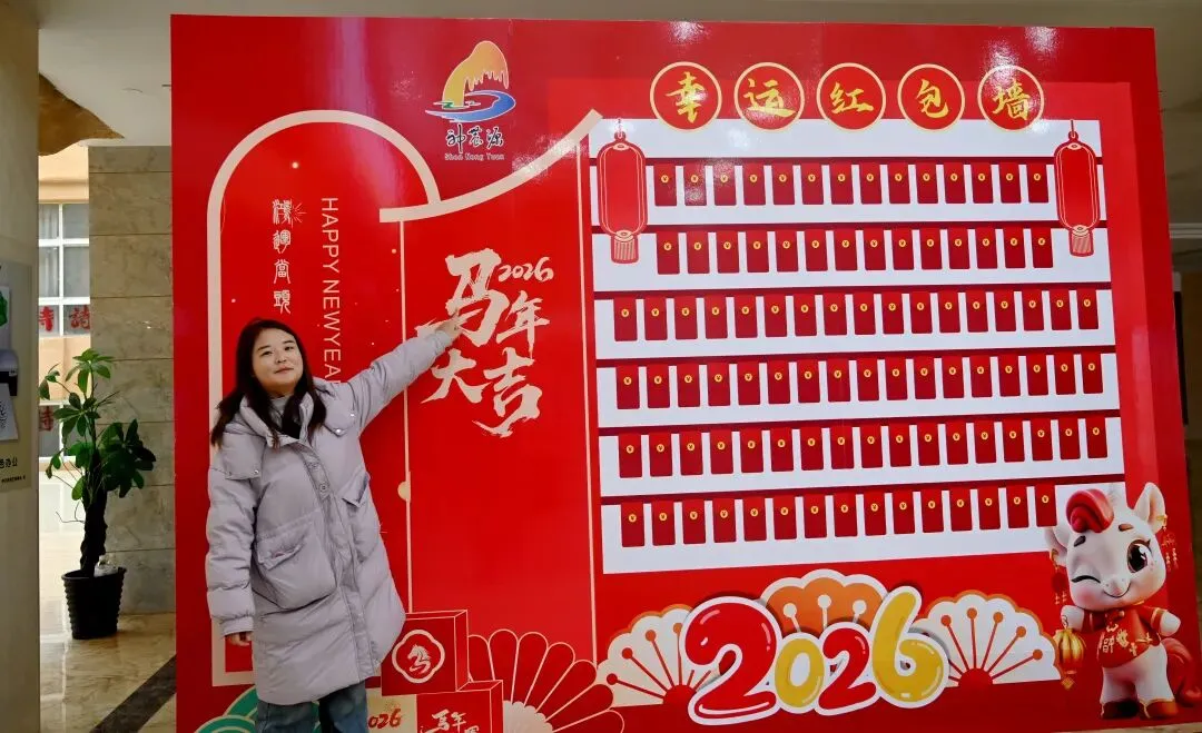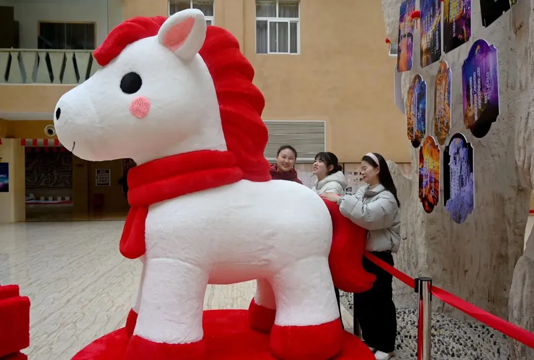 景区以马年为核心,打造“马运亨通”“马上发财”等多个喜庆打卡点,红灯笼、生肖马,花墙装饰与自然景观相映成趣。无论是“拍马屁”谐音互动,还是“马力全开”主题拍照,都让游客在游览中感受“马到成功”的新年祝福。