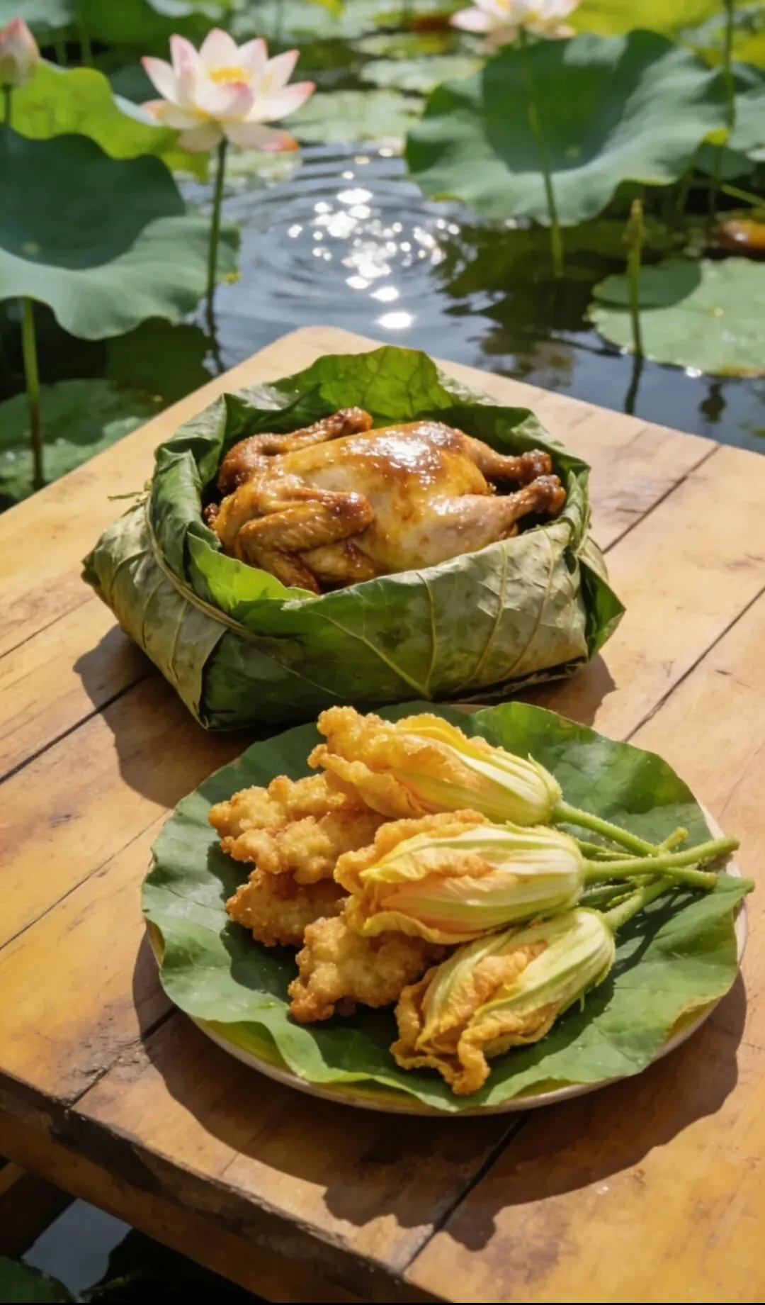 🔥 炸荷花:新鲜荷花裹粉油炸,外酥里嫩,带着淡淡荷香