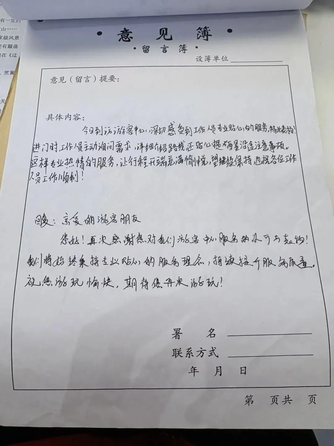 游客表扬信