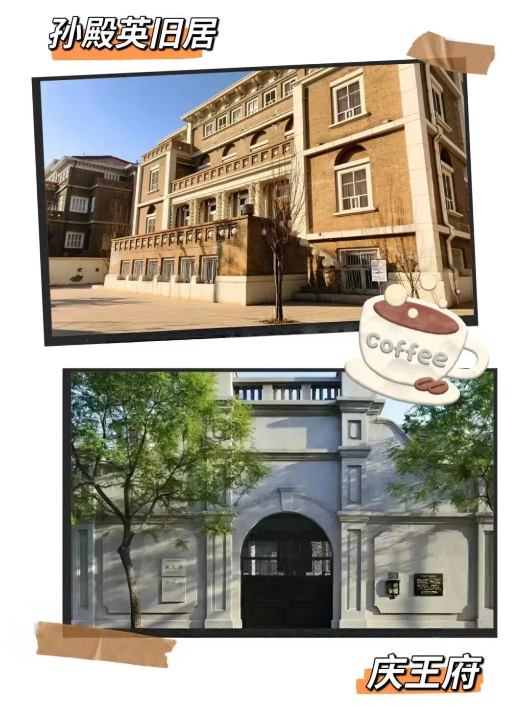 📍游览顺序:孙殿英旧居(睦南道20号)→ 咖啡区休憩(兑换咖啡和庆王府参观门票) → 步行约10分钟 → 庆王府(重庆道55号)