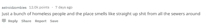 “街上到处是无家可归的人,而且四周弥漫着从下水道飘散开来的屎味儿……”