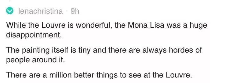 “蒙娜丽莎,算了吧。卢浮宫,可以。