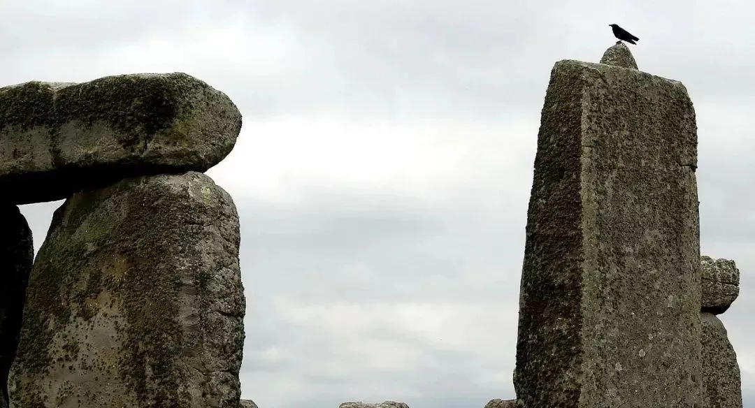 巨石阵旁边的鸟因为逆风根本飞不走!只能呆在草地上,或者被大风吹得往后飞...