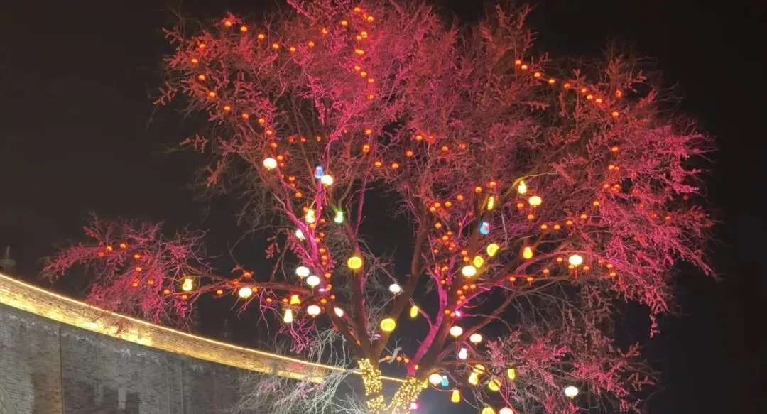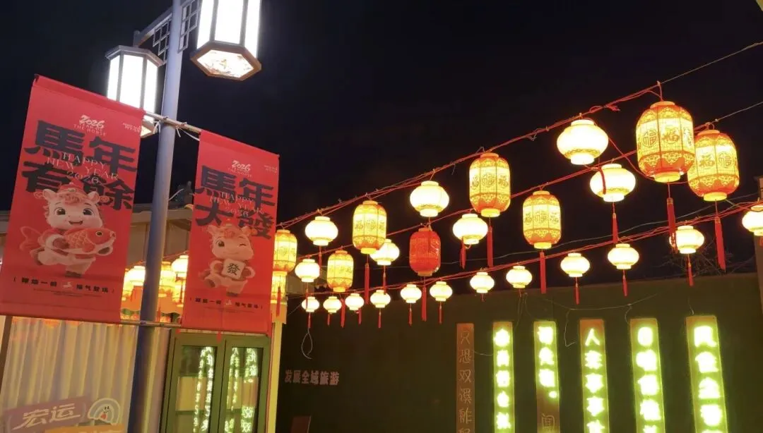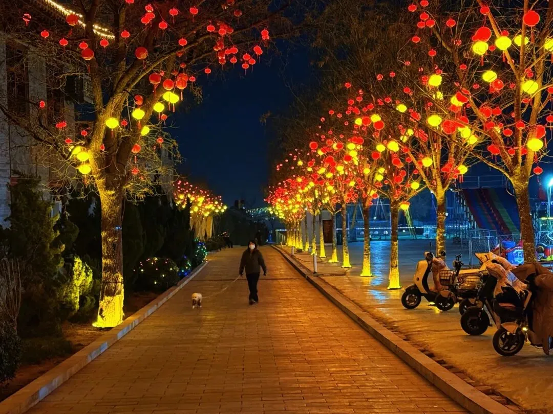 从北广场步入园区内部,氛围亮化已全面开启。沿途树木都披上了如梦似幻的灯饰,宛如一条条光影交织的星河,温暖而璀璨,指引着游人步入一个灯火辉煌的春节梦境。