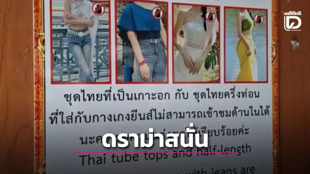 公告牌还补充说明,改良式泰装,例如将泰式披肩与牛仔裤搭配,或露肩式泰装上衣,均被视为不雅着装,且“无法进入内部区域参观”。