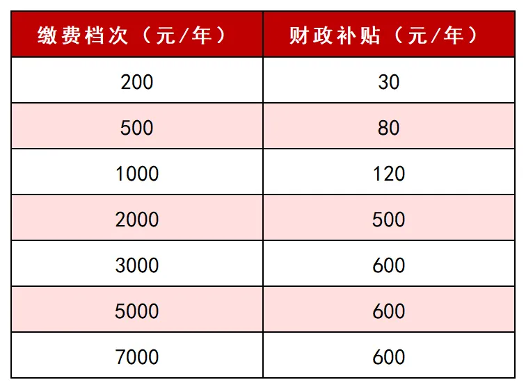 按每年7000元档次缴费的,补贴标准从500元提高为600元。
