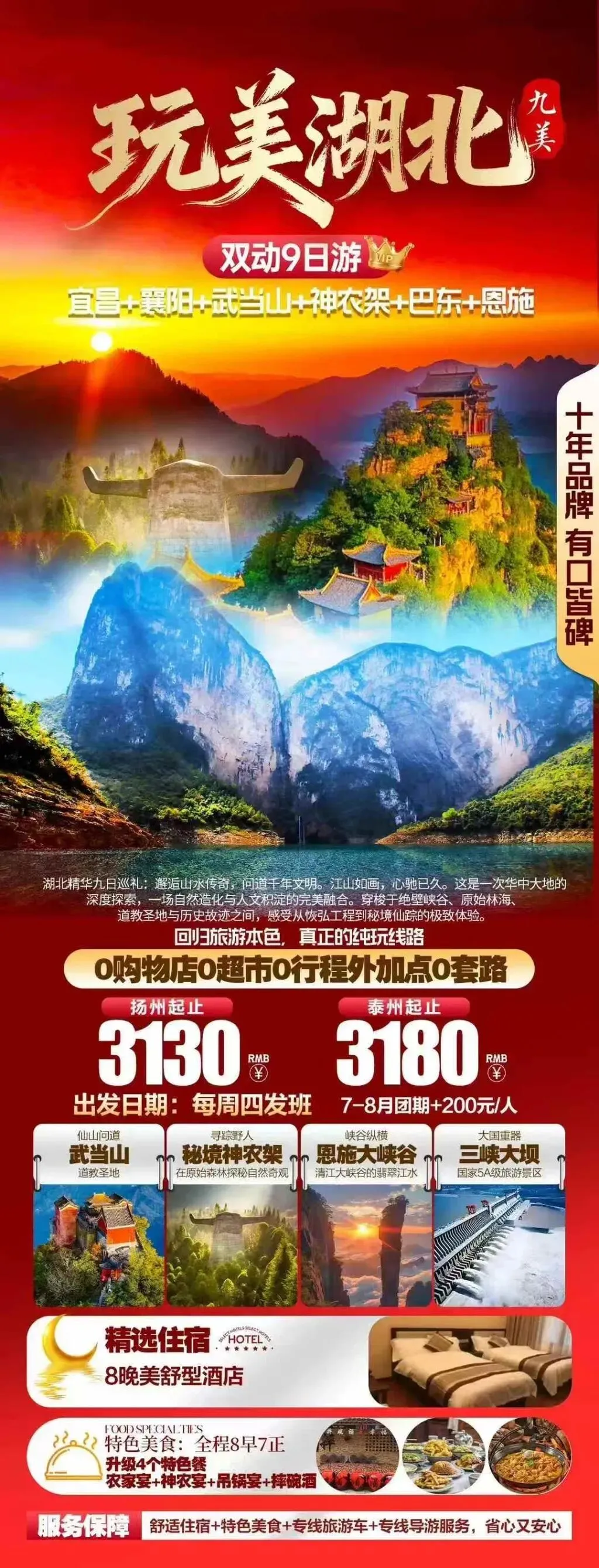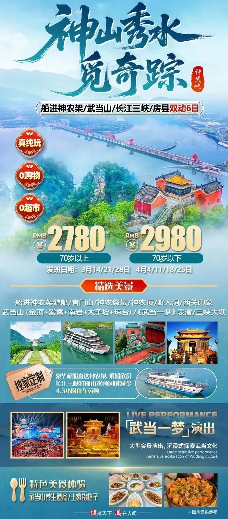 湖北深度游 三峡神农架武当山 纯玩无购物