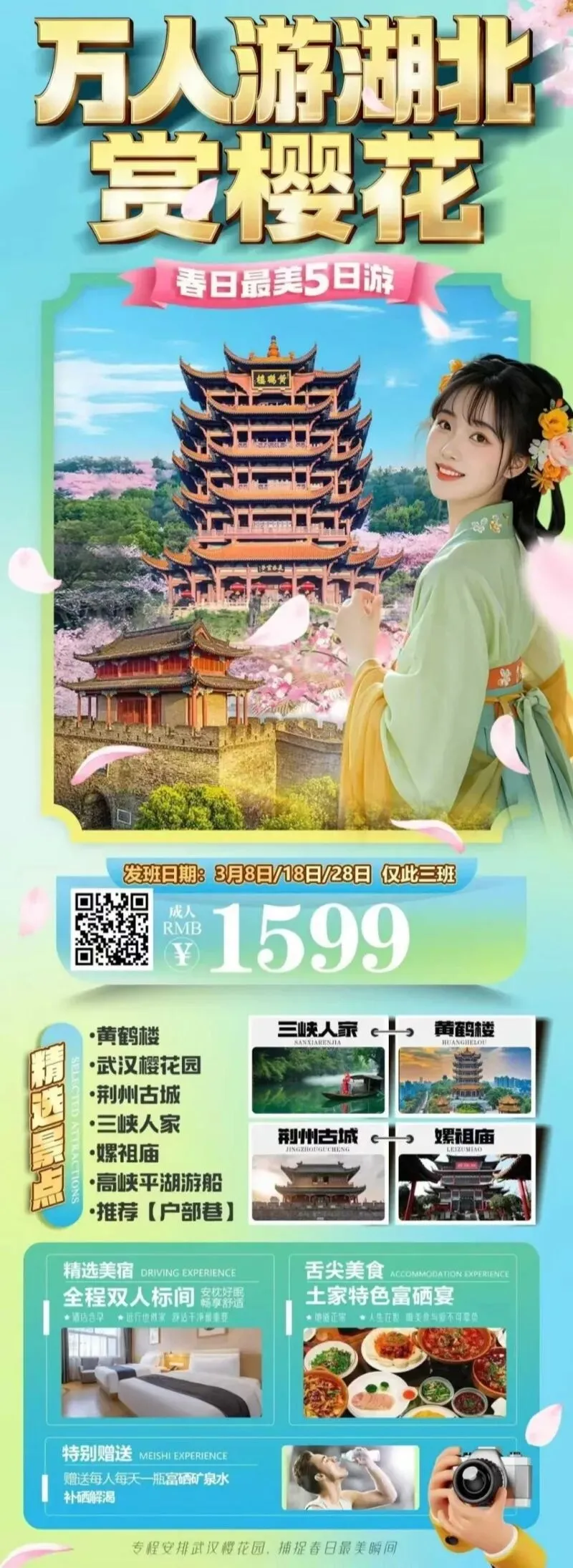 🌸文化长廊: 串联黄鹤楼、荆州古城、嫘祖庙,体验楚文化与三国历史。