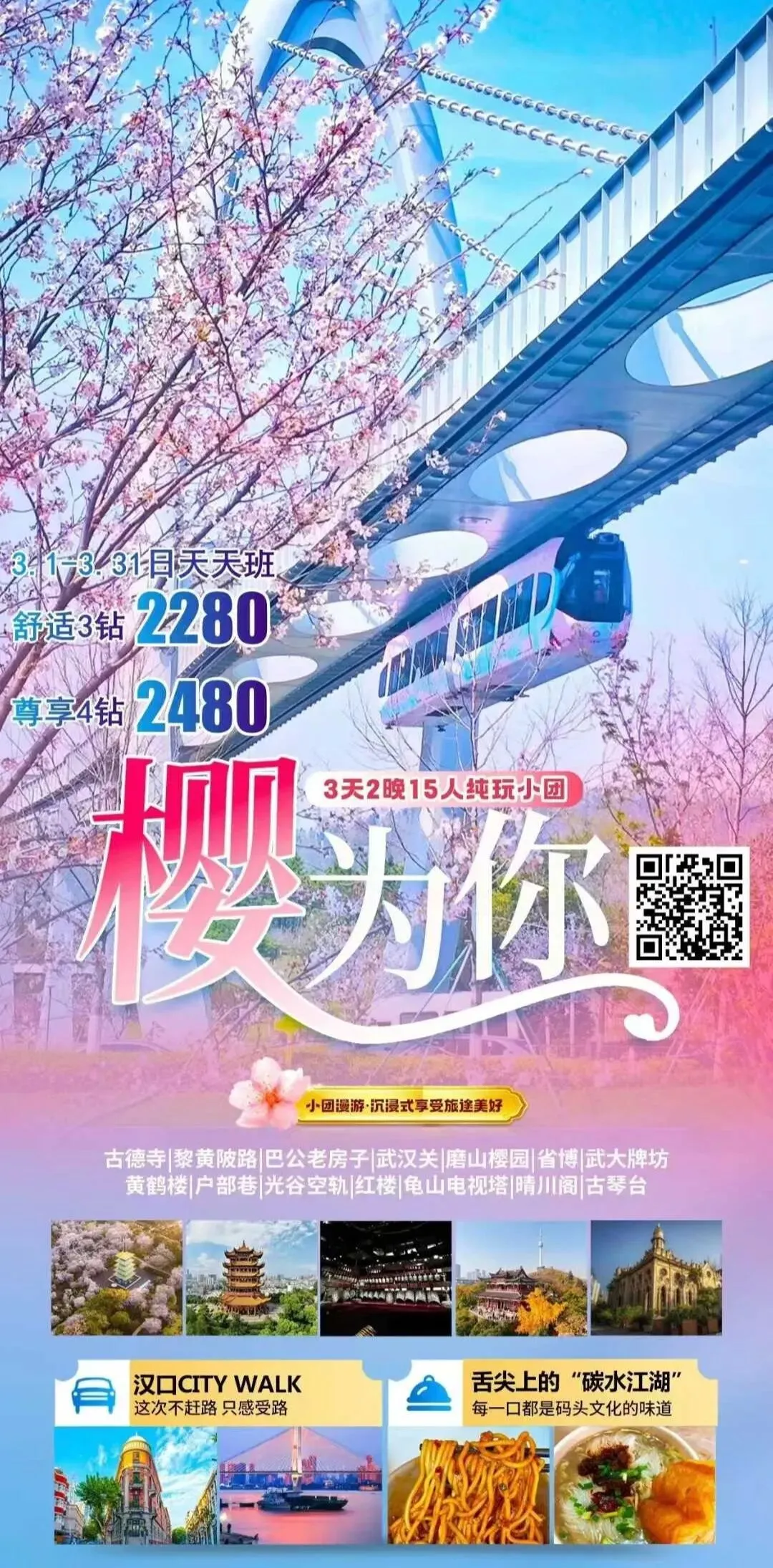 🌸春日限定: 专程安排武汉樱花园,捕捉春日最美瞬间。