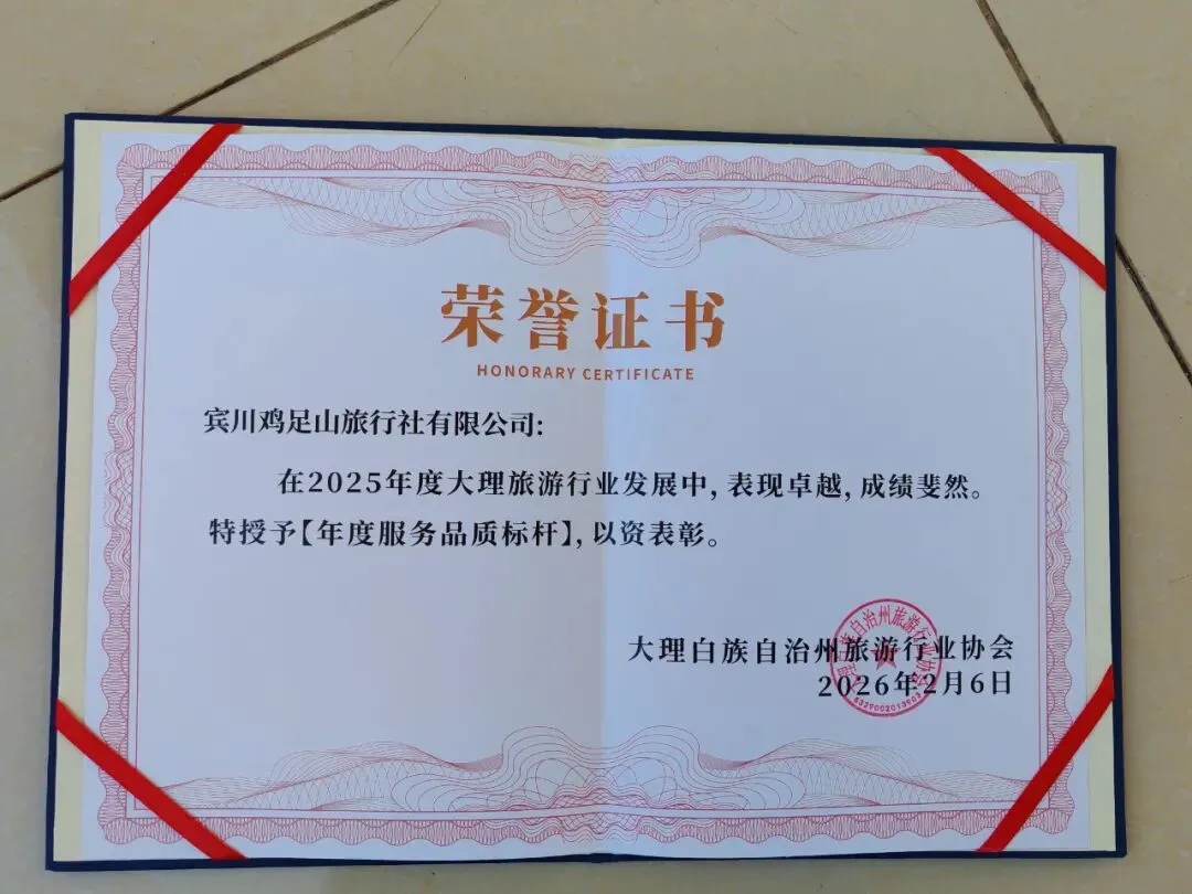 会上,宾川鸡足山旅游投资开发有限公司凭借扎实业绩与亮眼表现,一举斩获两项重磅荣誉,宾川鸡足山旅游投资开发有限公司荣获 “2025 年度新媒体营销先锋奖”;宾川鸡足山旅行社有限公司获评 “2025 年度服务品质标杆奖”。
