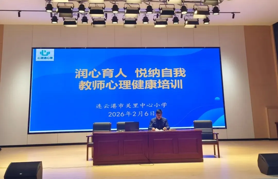 为进一步加强全区小学教师心理健康教育,提升教师心理调适能力,营造积极健康的育人氛围,2026年2月6日下午,关里中心小学在学校三楼报告厅,特邀连云港市心源通心理咨询中心的孙娟老师,为全区小学教师带来了一场主题为“润心育人 悦纳自我”的心理健康专题培训。本次活动由校长周志兵主持,全区各小学教职工共同参与学习。