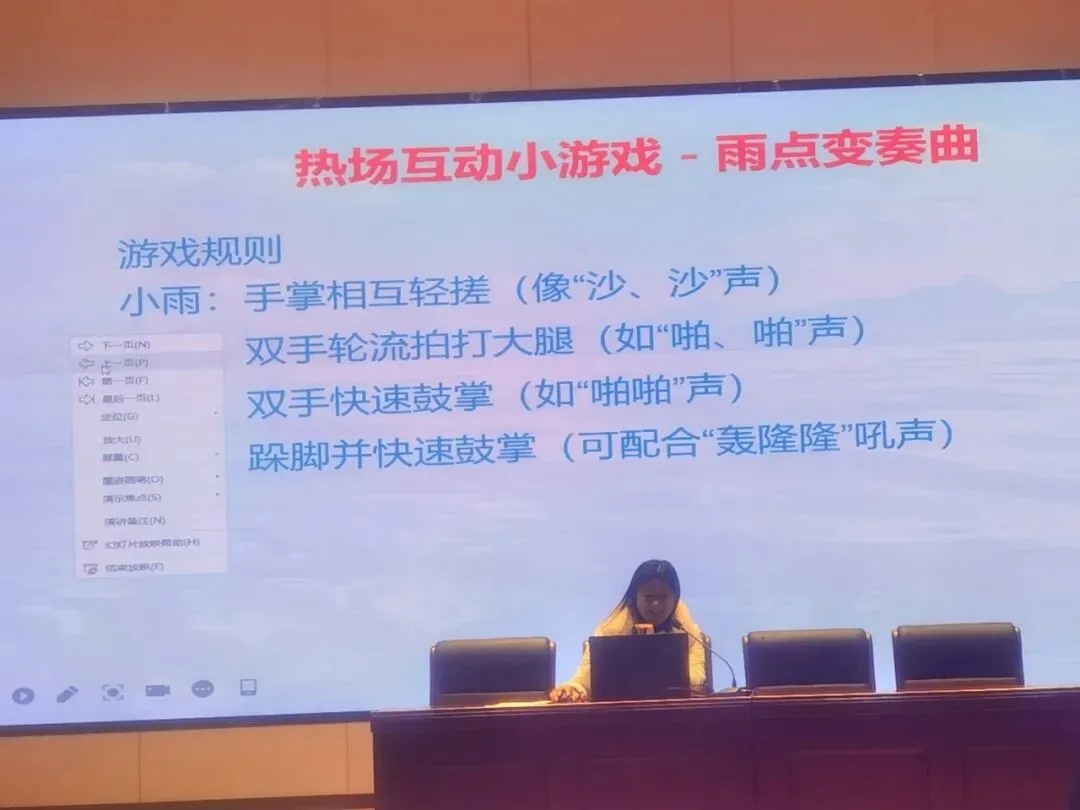 在培训中,孙老师以生动有趣的“雨点变奏曲”互动游戏开场,迅速调动起现场氛围,让老师们在轻松的节奏中进入学习状态。随后,她结合当下教师群体的压力现状,从“健康与心理健康的定义”“亚健康心理的七大信号”“压力的来源与应对”“情绪管理与调节”等多个维度展开深入浅出的讲解。