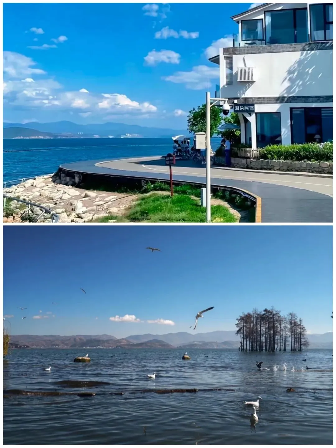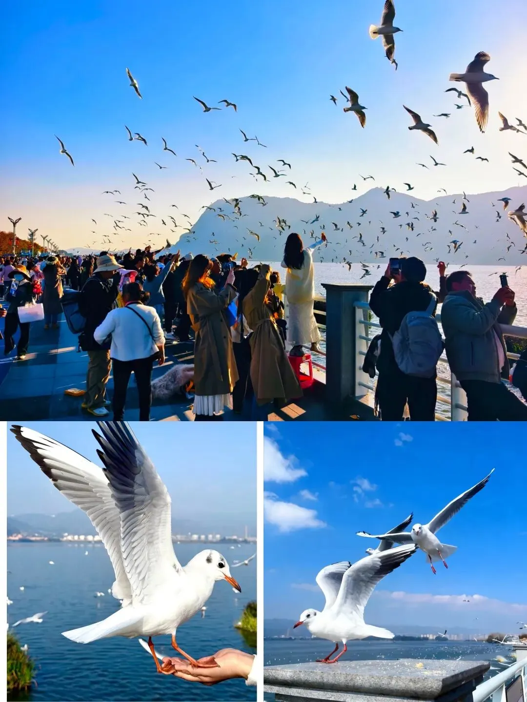 大坝本身就是一道风景。站在宽阔的坝上,眼前是开阔的滇池湖面和远处的西山“睡美人”轮廓,视野极佳。每年11月至次年3月,成千上万从西伯利亚飞来的红嘴鸥在此越冬。可以在此投喂海鸥,与这些小家伙近距离互动。