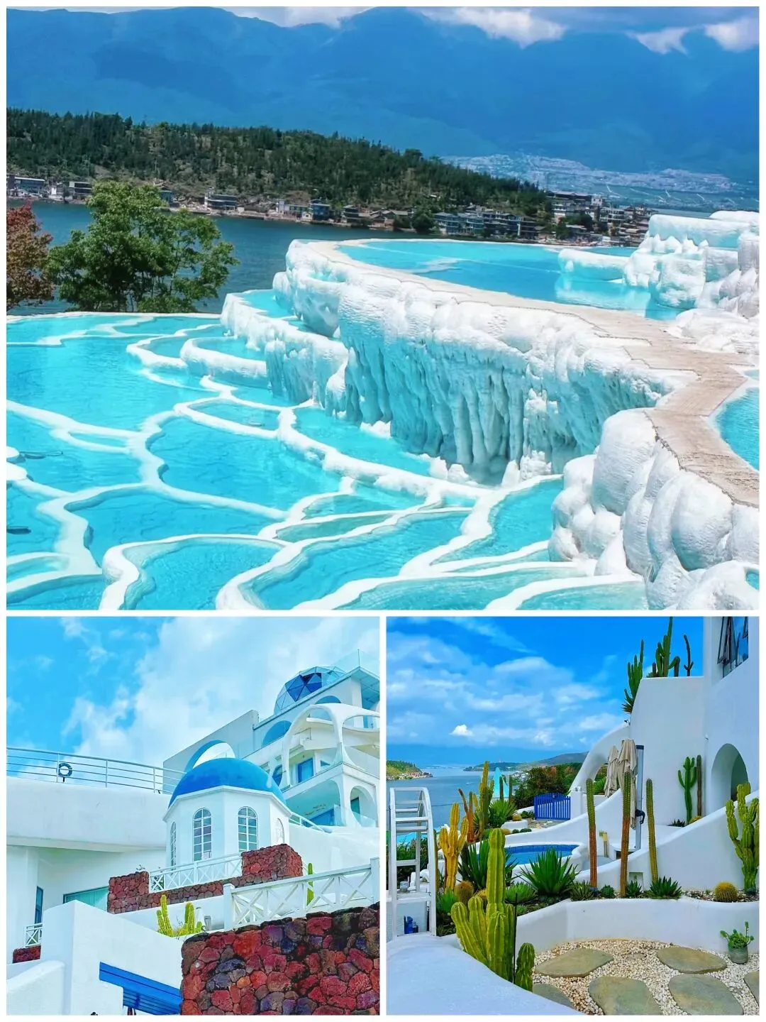 大理的理想邦是一个网红度假小镇,被称为大理的圣托里尼,位于大理市海东镇,洱海东岸的环海东路,与苍山隔海相望,以其独特的地中海风格建筑和苍山洱海的壮丽背景而闻名,非常适合拍照和休闲。