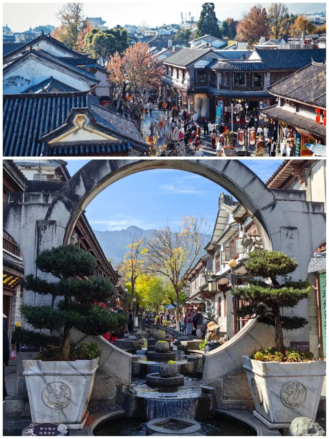 丽江古城由大研古城(主体)、束河古镇、白沙古镇构成,是一座没有城墙的“活着的”世界文化遗产,始建于宋末元初,距今已有800 多年历史。古城依山傍水,随坡就势,水是古城的灵魂,古城水系利用三眼井实现分级使用:上游饮用、中游洗菜、下游洗衣。数百座石桥、木桥连接起街巷,形成“小桥流水人家”的诗意画卷。