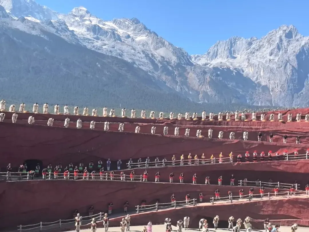 在山脚下的甘海子露天剧场观看张艺谋导演的实景演出《印象・丽江》,以雪山为背景,展现纳西族千年文化与精神信仰。