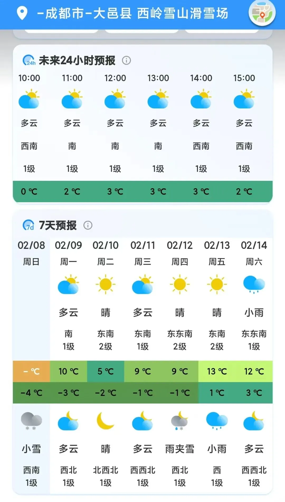 西岭雪山景区2月9日(周一)气象预报01