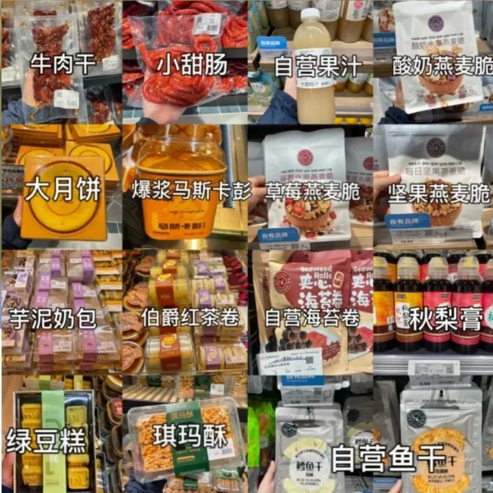4. 零食区:开心果、燕麦脆(酸奶/草莓/坚果三种口味)、原味豆浆粉、自营果汁(葡萄汁、橙汁、芒果汁、桃汁)