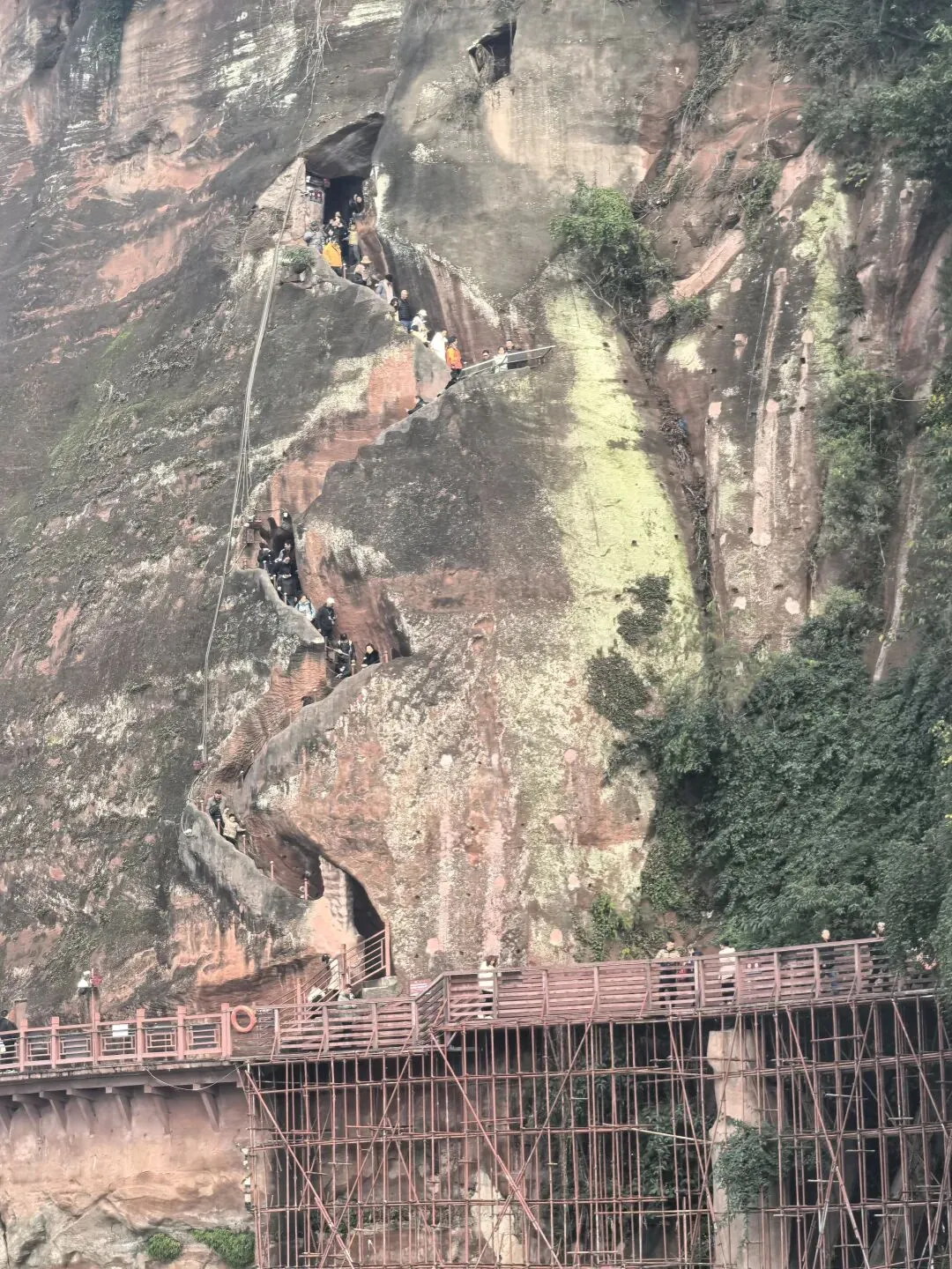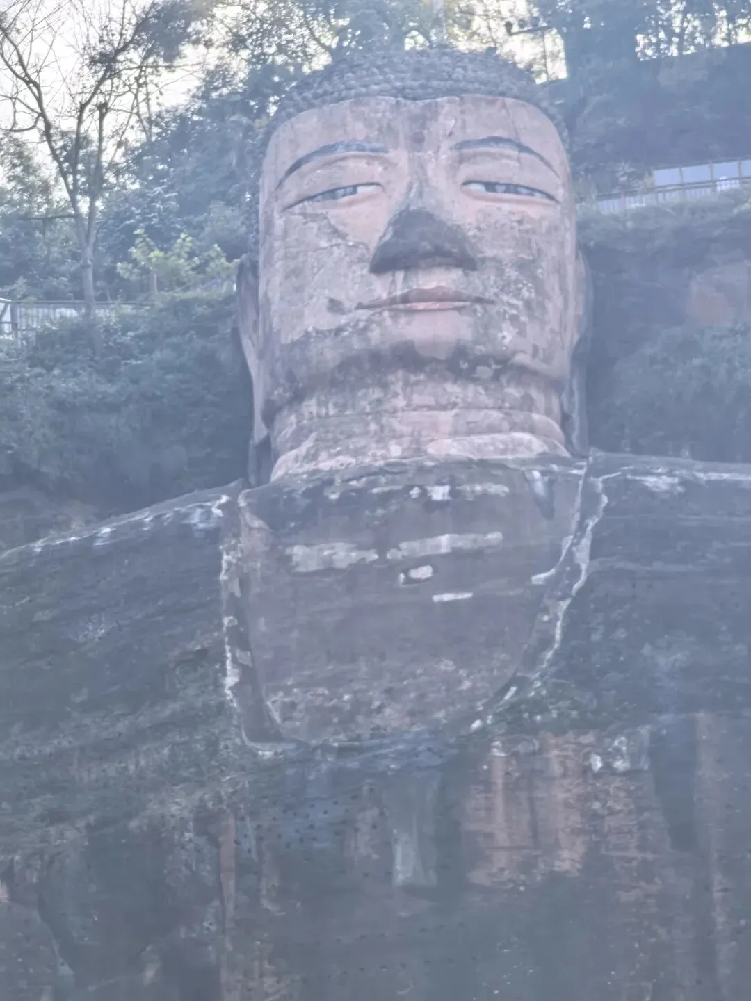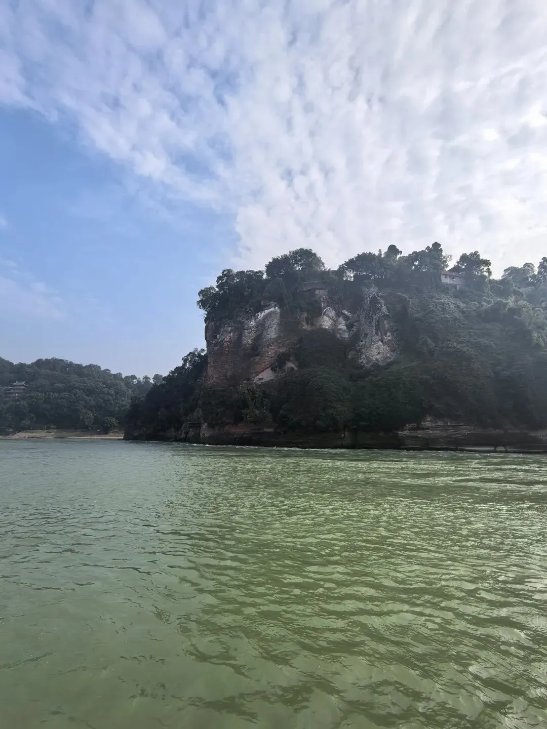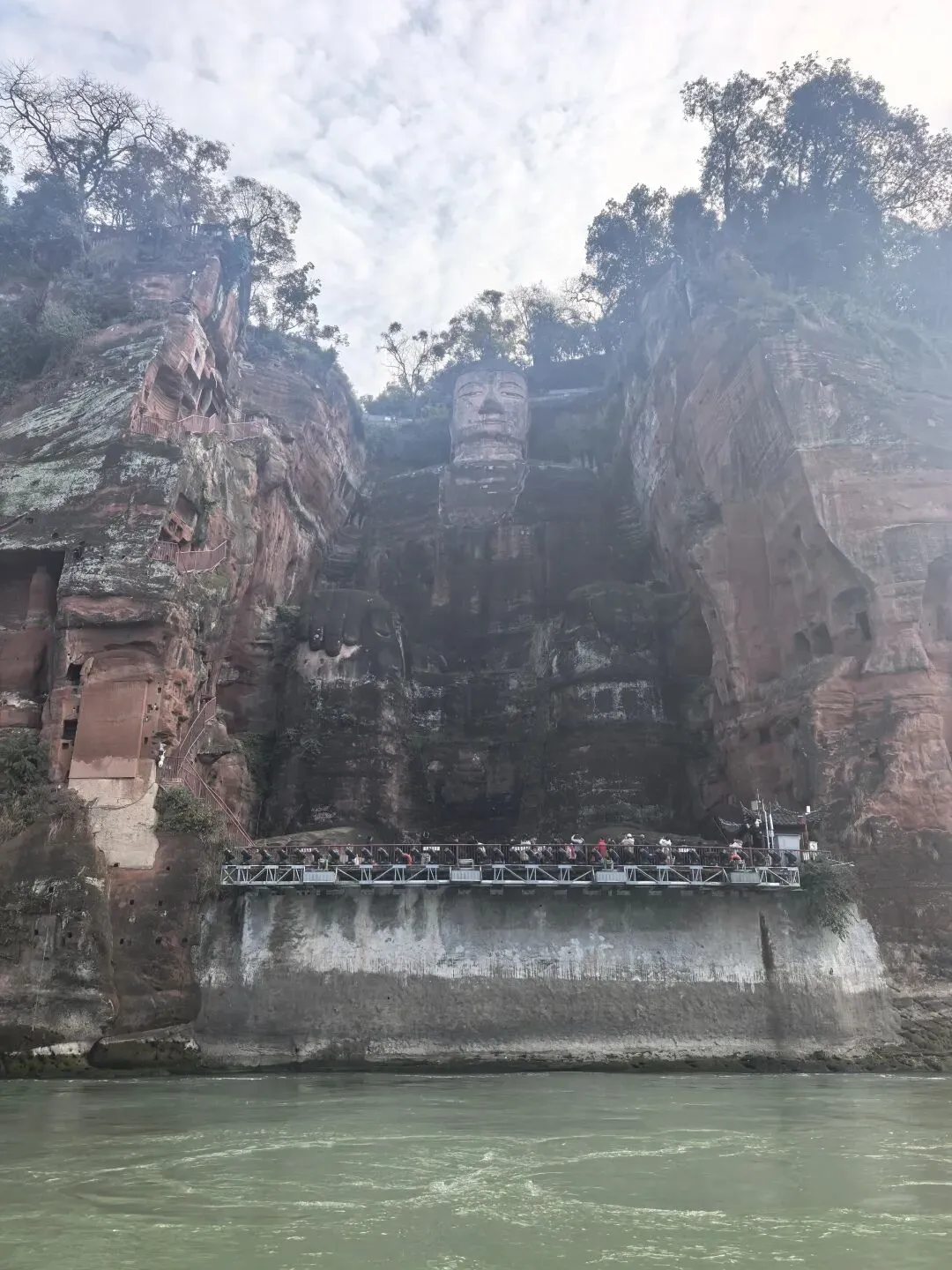 乐山大佛景区有两条游览路线,一条是爬山礼佛,从佛脚下出发,走山路到佛头顶部,再一路走下来;另一条是乘船游览,可以观赏乐山大佛全貌。我选择了乘船游览。