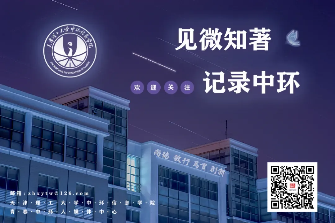 「 中环信息学院 青春中环人媒体中心 出品 」 图片来源 / 盛乃越 李诗雨 郭 睿 毛林玉 刘天宇 齐博文 靳宇喆 文字来源 / 吕丹丹 贺 采 高天鑫 图文编辑 / 陶静琪 徐芷妍 杨 芮 张佳瑶 周士博 董欣梦 责任编辑 / 赵宸萱 审核签发 / 李燕飞 李 璐 投稿&加入我们tjzhictw_bgs@126.com