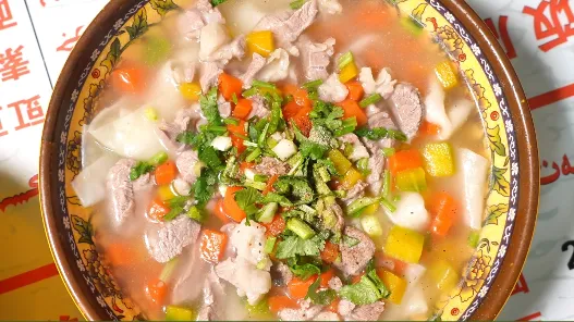 肉汤煮面配大块羊肉,鲜香管饱超满足。