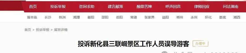 游客投诉新化三联峒工作景区人员