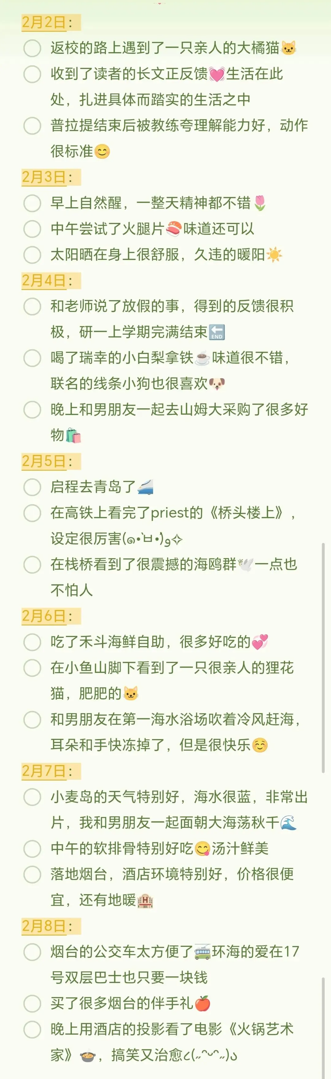 复盘:这周睡眠比较充足,除了周四赶高铁有点缺觉。出游的过程中没有定闹钟,但早上七点多就自然醒了,目前作息最大的问题还是入睡时间太晚。