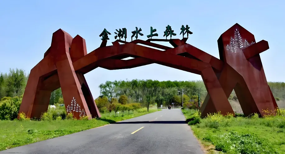 第六站:金湖水上森林公园这是华东最大的人工湿地生态林,被称为“水上兵马俑”。乘坐竹筏穿梭在水杉林里,头顶是白鹭飞过,脚下是清澈见底的流水。这里的“树屋部落”和“清境江湖”是网红打卡点,随手一拍就是绿野仙踪的既视感。建议穿防滑鞋,这里的空气负氧离子高到让人微醺。