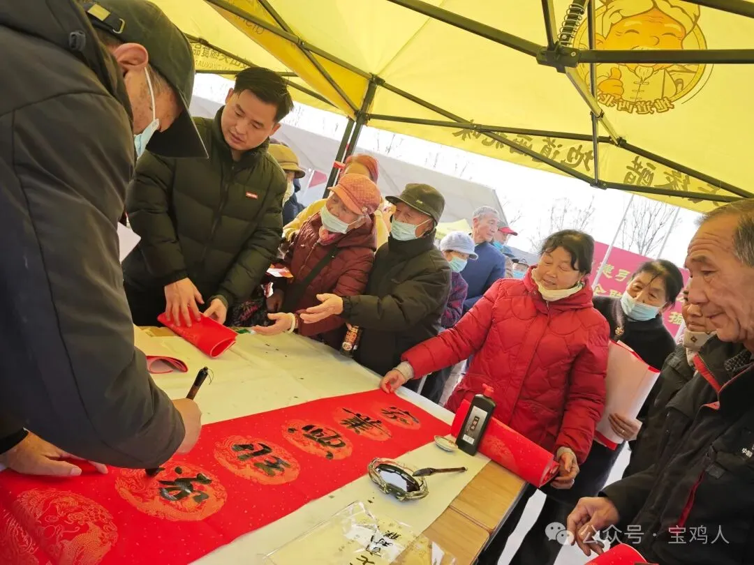 岐山县传统文化促进会在王玉芳会长的安排与梁辰毓副会长的组织下,当地15位知名书法家现场挥毫泼墨,现场为老百姓义写春联,笔走龙蛇,书法家们精湛的书法技艺,为美好生活添香加味,赢得了大家的拍手叫好。有位大叔在和我们交流时,动情的说“这些年,咱们的日子好了,物质丰富了,就需要有精神层面生活,每年醋文化景区搞的活动投入都不小,都很接地气,有特色。让我们在家门口就有秦腔可看,有春联可领,有大奖可抽。真是太好了!”