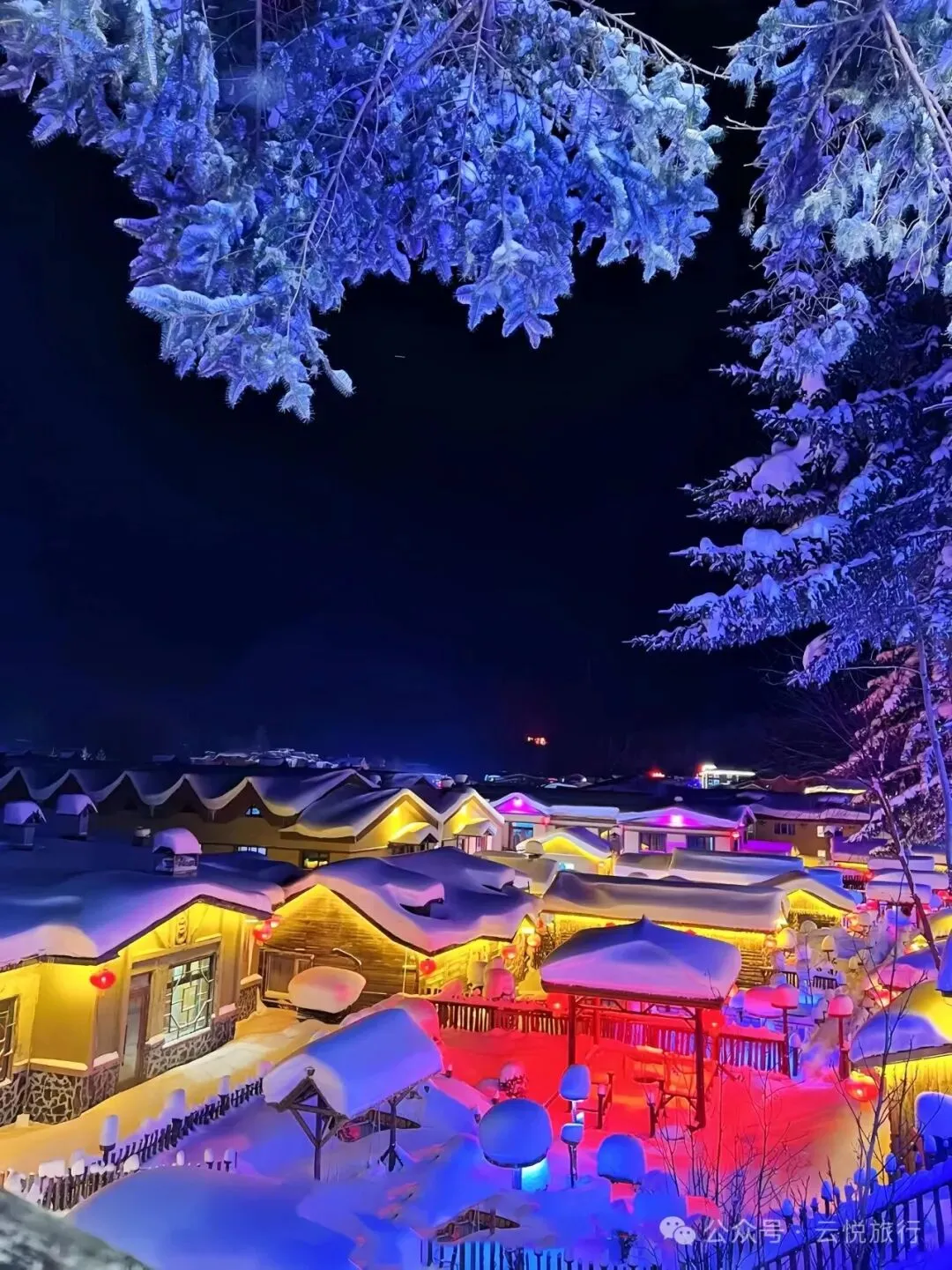 夜晚在随处可见的大红灯笼照耀下,参加雪地户外千人篝火晚会、大东北户外蹦迪,入住特色东北火炕,做一场美妙的梦~
