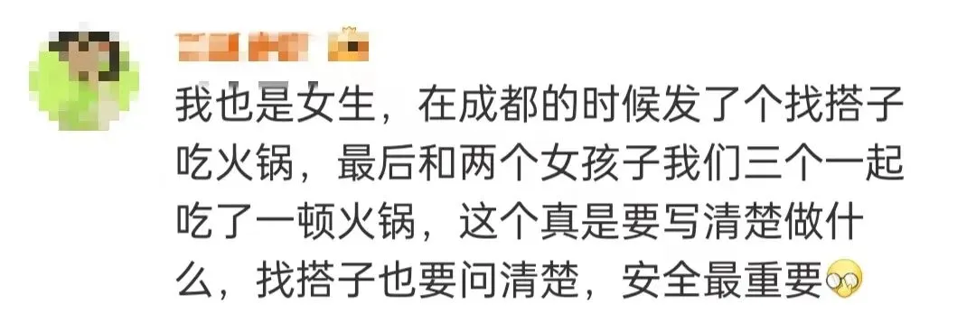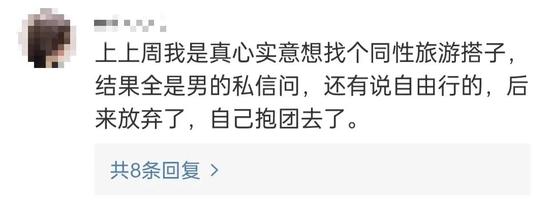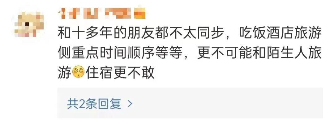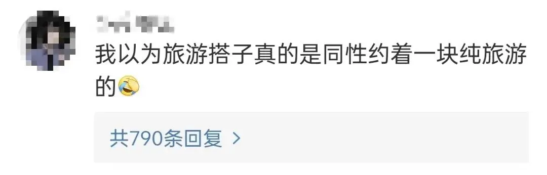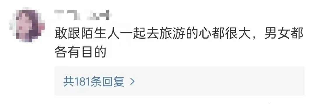 有网友认为“我以为旅游搭子真的是同性约着一块纯旅游”“敢和陌生人一起去旅游的心都很大”: