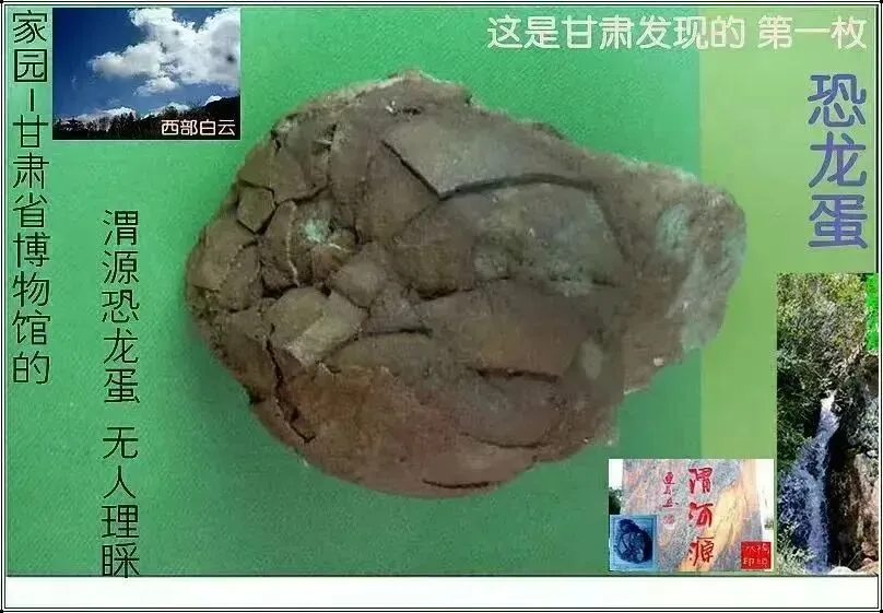 (渭源火车站广场的标志,除了奔马🐴与渭源无关,下半部分渭水之源整体不错。作为中国旅游标志,奔马塑像复制品已经蔓延至甘肃大地,兰州武威天水等地都有不少,渭源还要复制就是馓饭两碗两碗馓饭了。与渭源地域地理文化历史人文,关系最密切最有深厚寓意的,恐龙蛋化石最有资格,因为渭源出土的甘肃第一枚恐龙蛋化石,迄今为止还没有在渭源境内任何一个公众场合,与渭源民众及其外来游客过客见过面。 因此,九成九的人们不知道渭源曾经在二十多年前,就出土过甘肃第一枚恐龙蛋化石!!!)