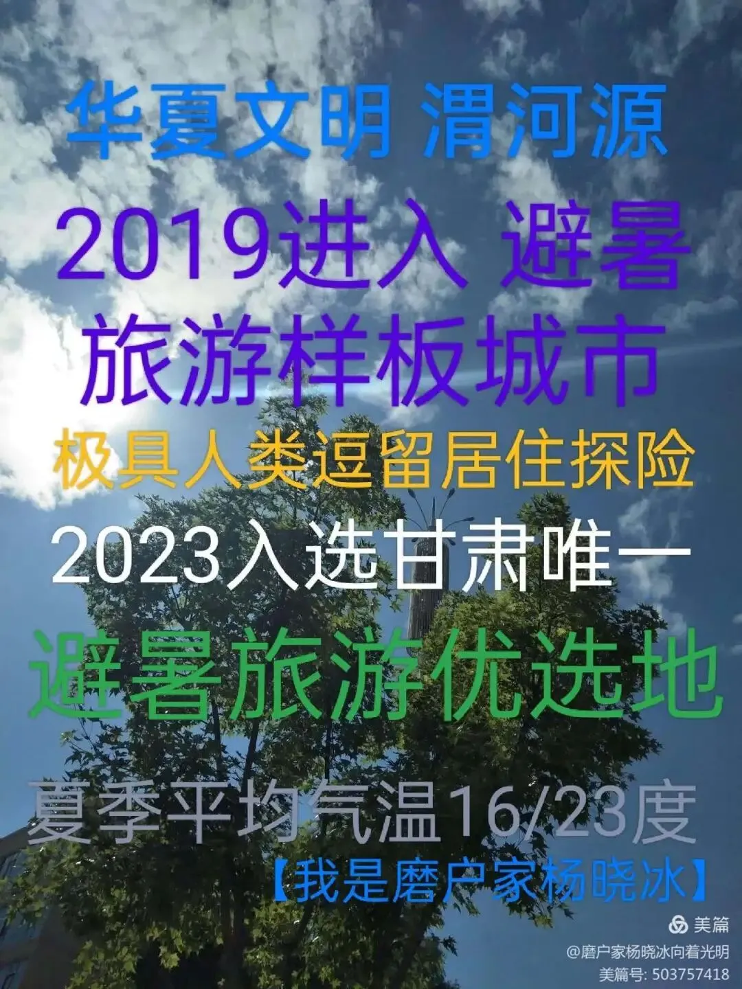 2019年渭源荣获避暑旅游样板城市,2021年,渭源县成为全省首批乡村旅游示范县创建单位,一个村荣膺全国旅游重点村,成为定西市第一个国字号乡村旅游村……。
