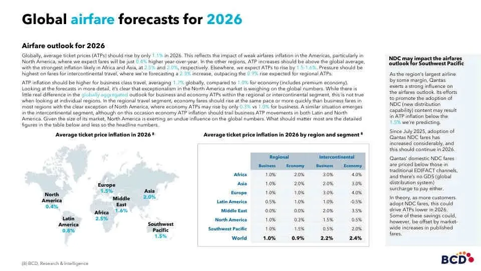 - 全球平均机票价格:仅上涨 1.1%,涨幅温和。