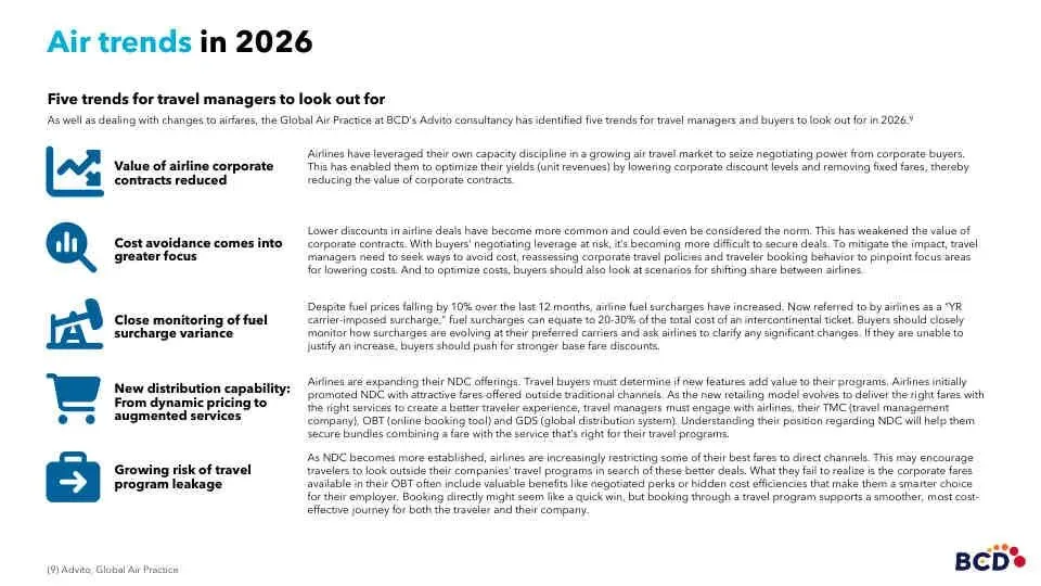 - 拥抱新技术(NDC):主动管理NDC带来的机遇(更好服务)与挑战(差旅泄漏)。