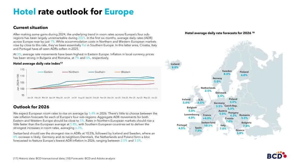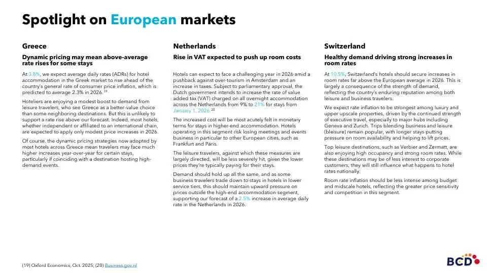 - 欧洲:+5.4%(瑞士最猛+10.5%;荷兰因增值税从9%升至21%,高端酒店承压)。