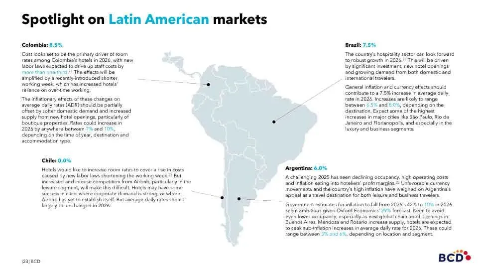 - 拉丁美洲:+6.4%(巴西+7.5%、哥伦比亚+8.5%,因本地高通胀推高成本)。