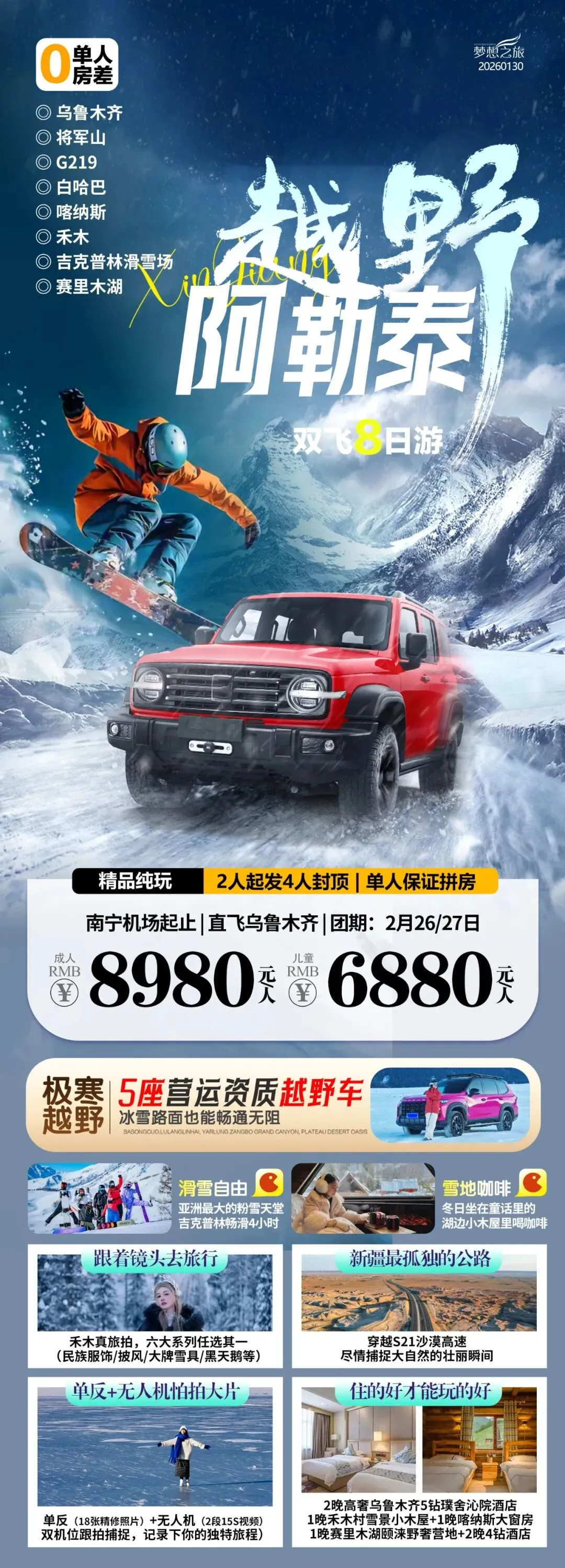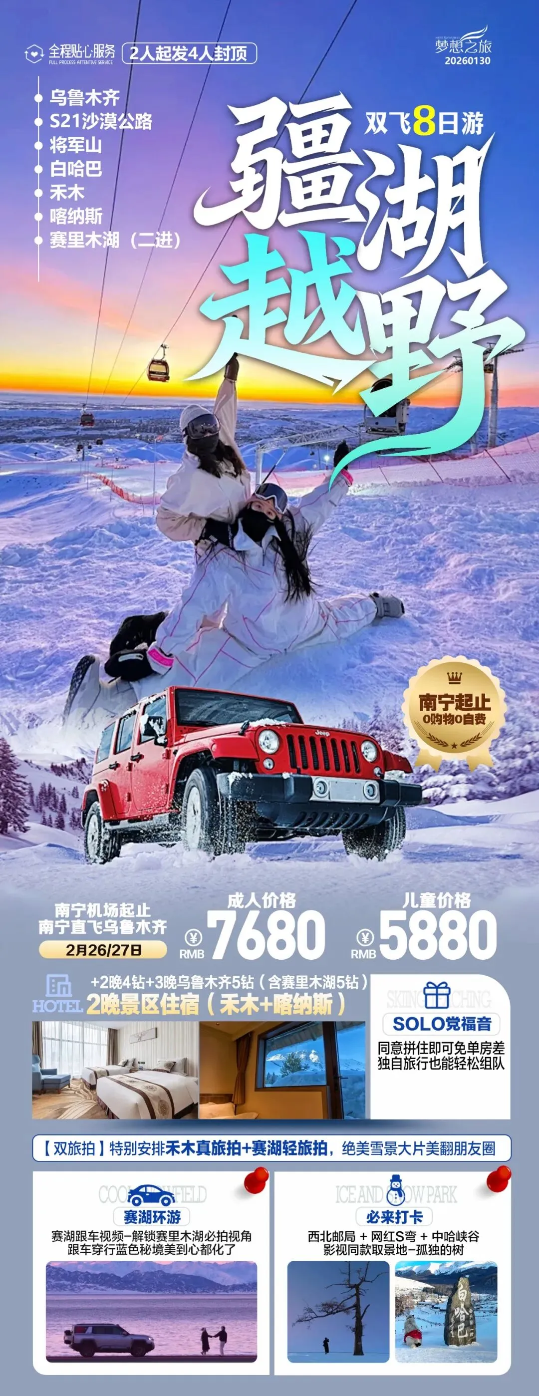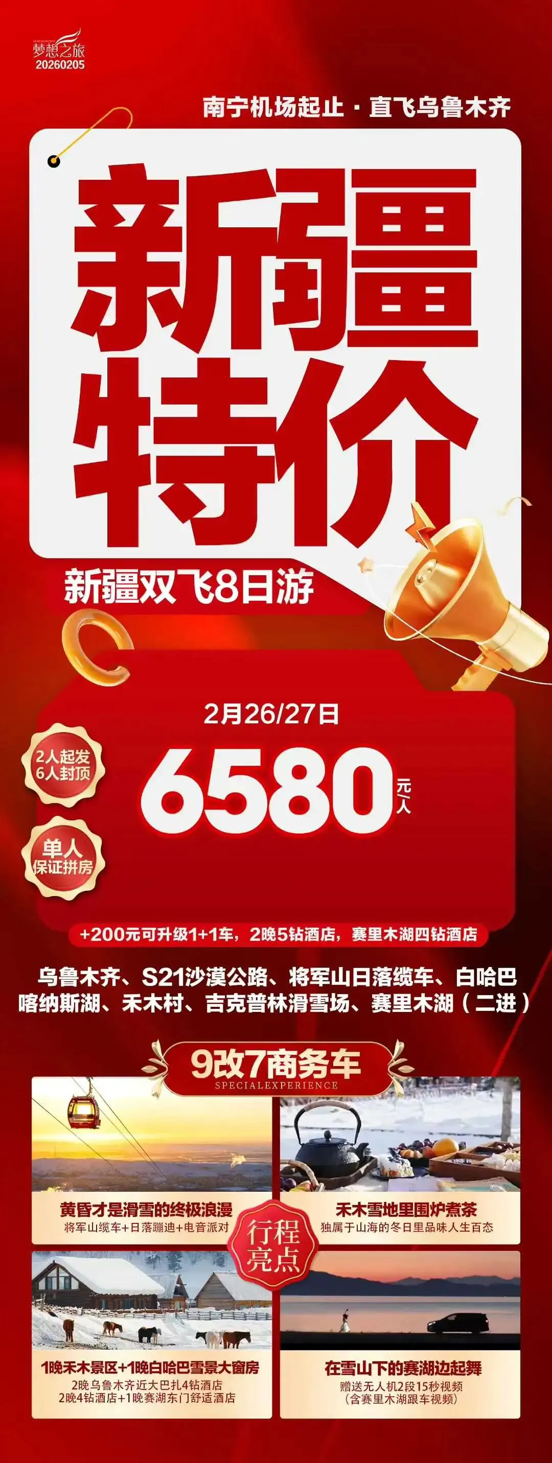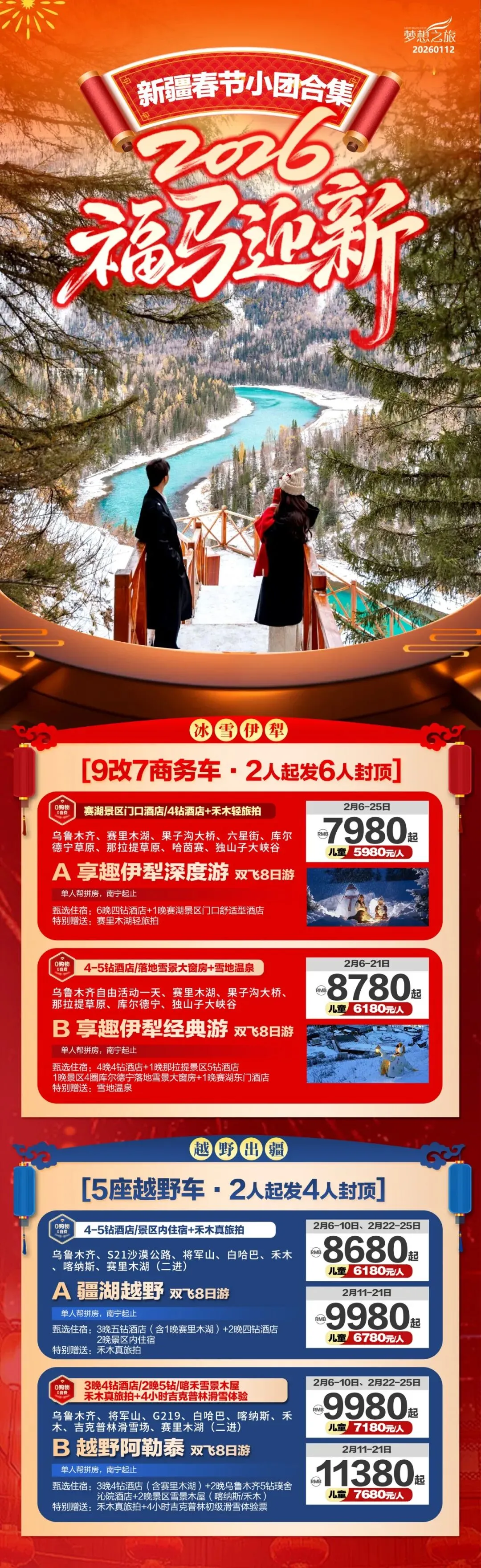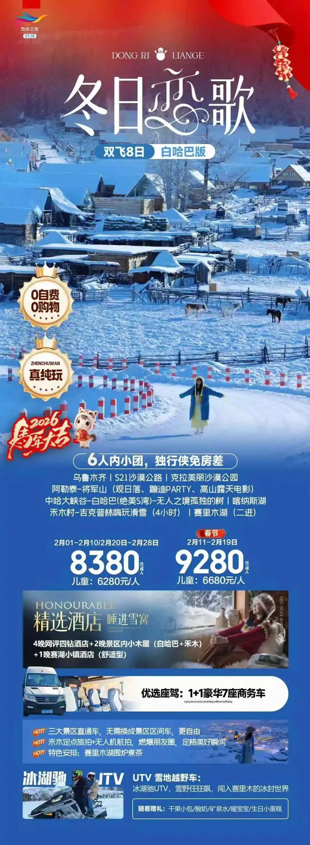 【新疆】2、3月 春节&寒假 新疆 旅游线路推荐 报名优惠!