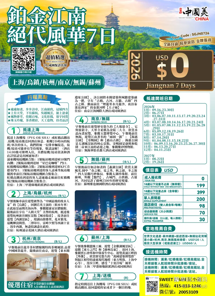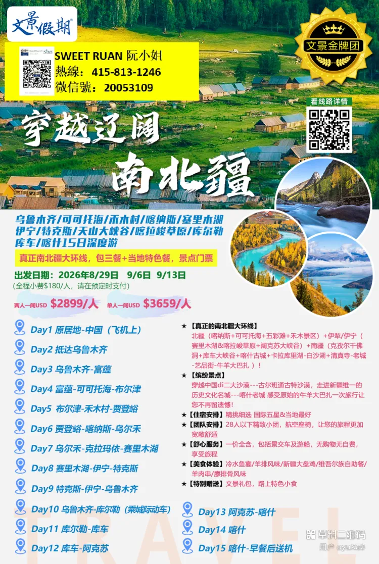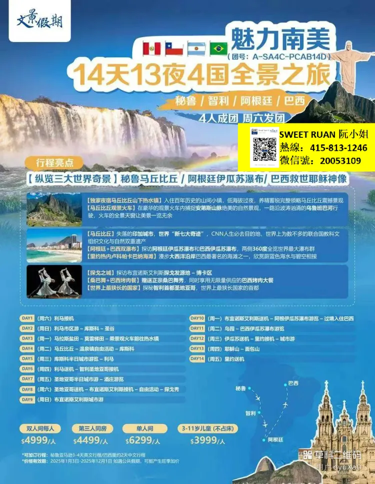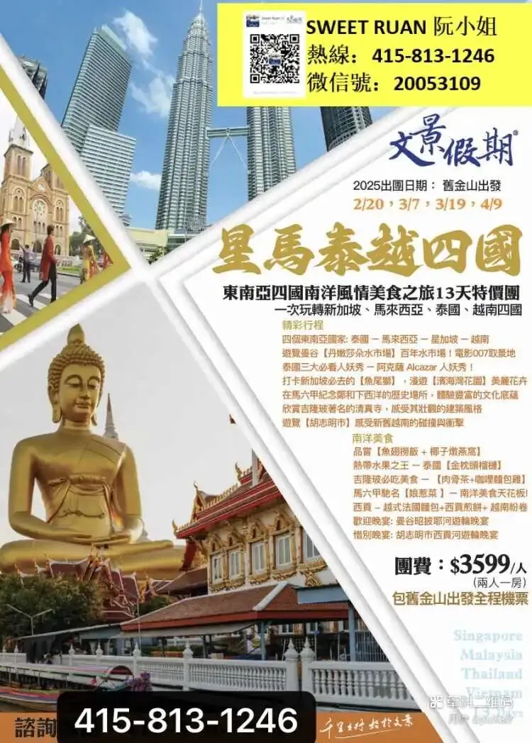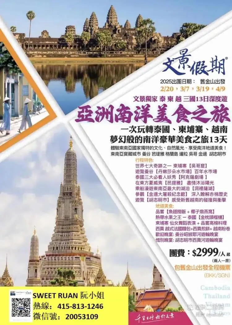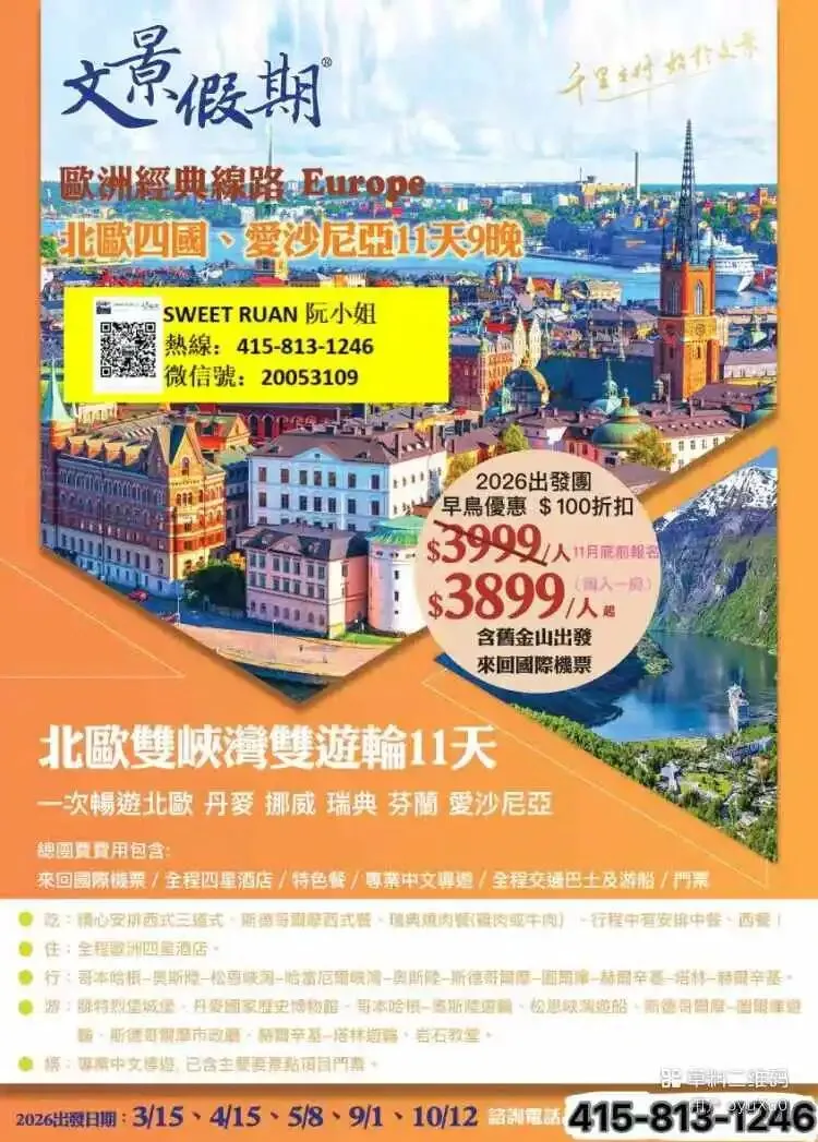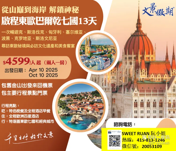 ![]() | 歡迎來諮詢詳細信息。 如果有需要“請聯繫” 文景假期旅遊顧問 Sweet Ruan 阮小姐 美國1-415-813-1246 請掃描左側獲取更多 微信號:20053109 |