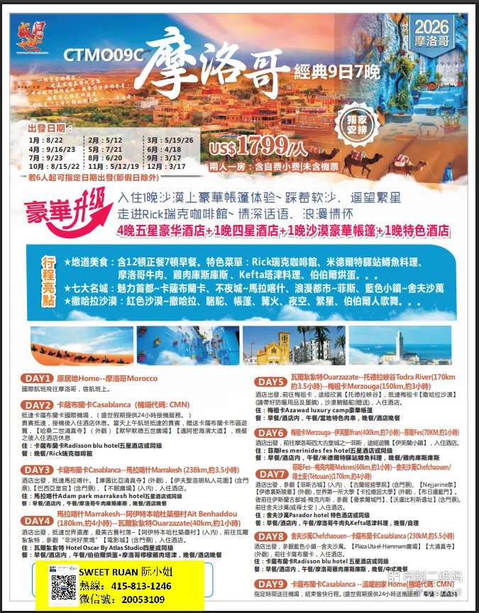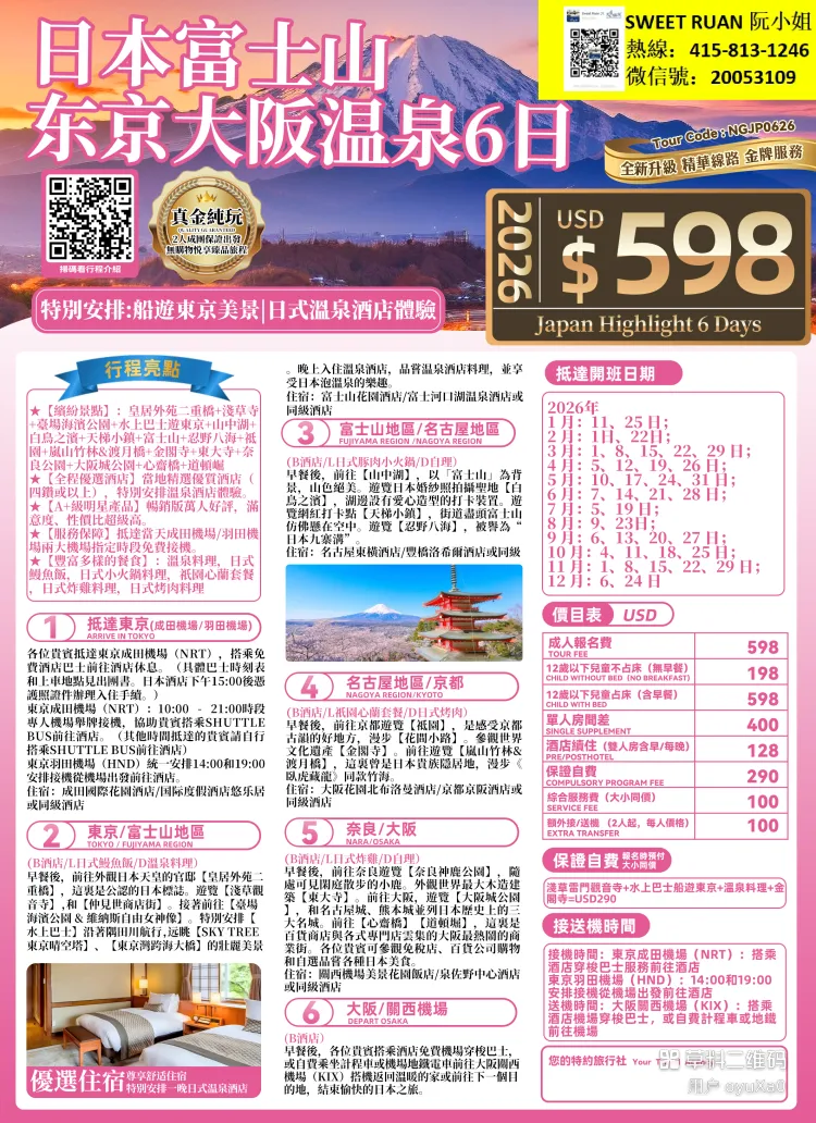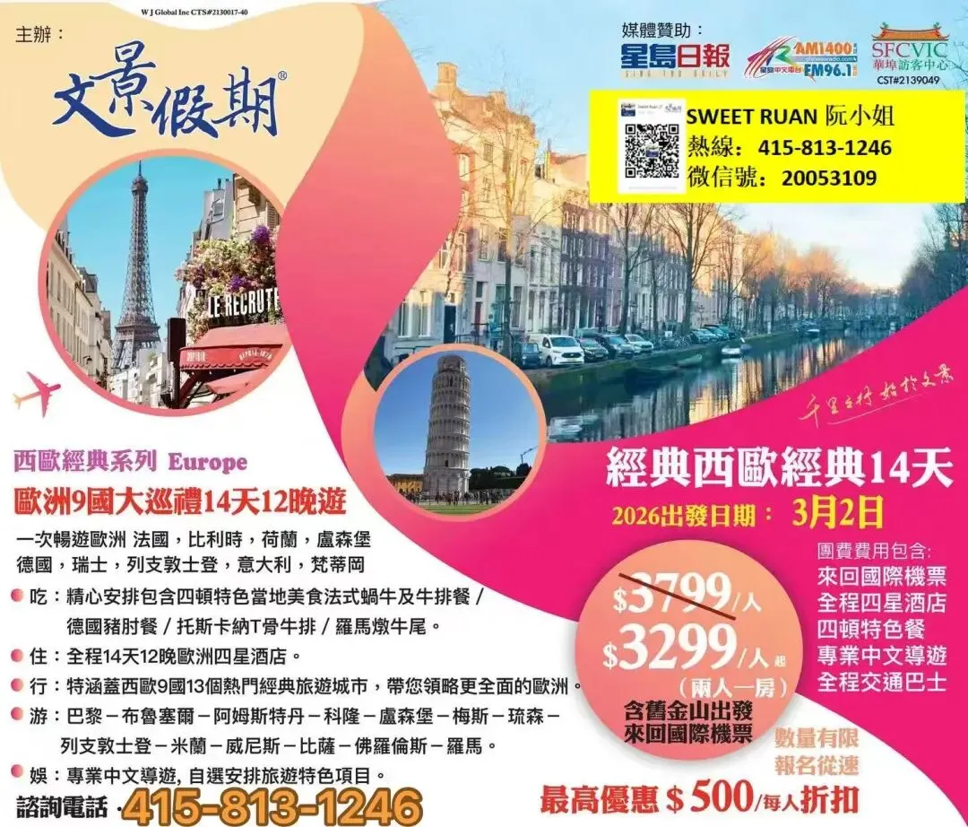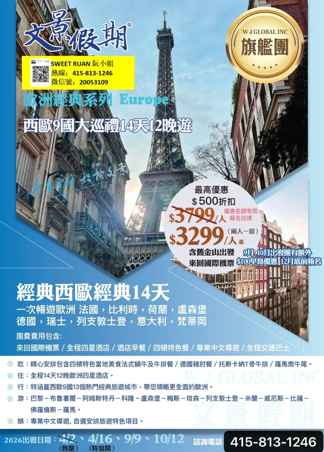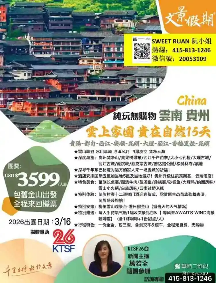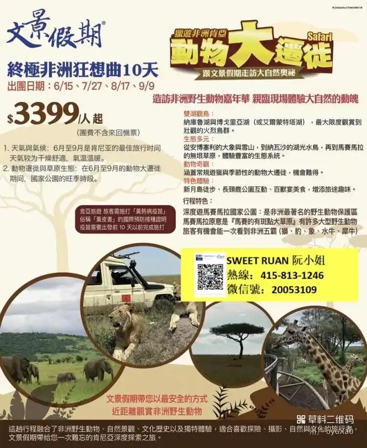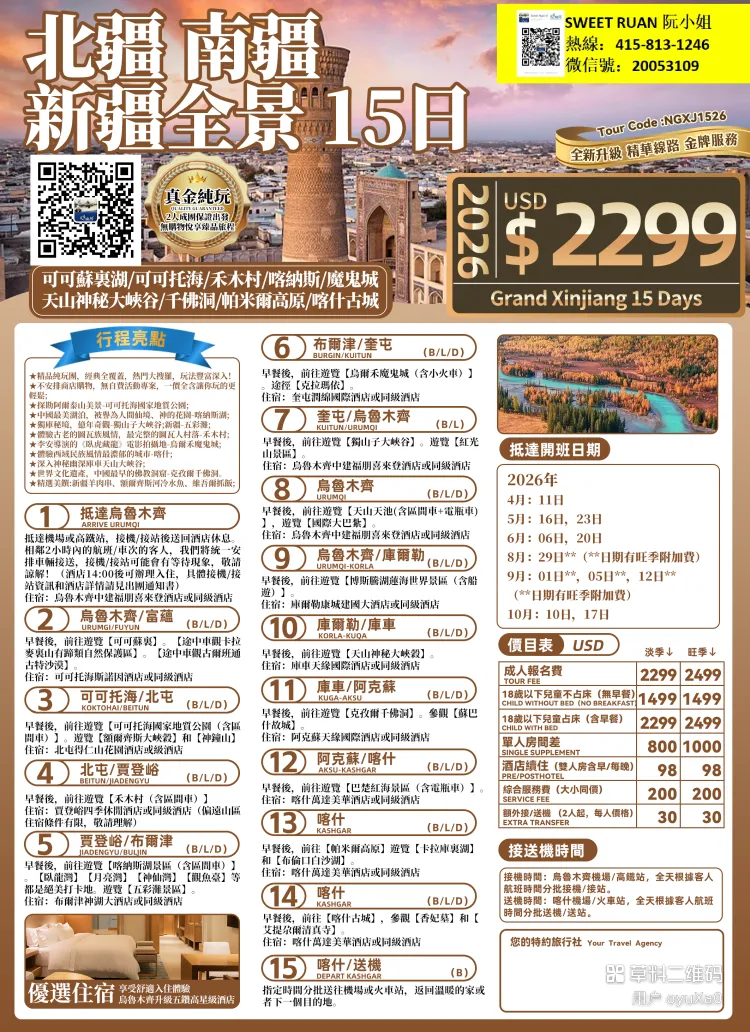 ![]() | 歡迎來諮詢詳細信息。 如果有需要“請聯繫” 文景假期旅遊顧問 Sweet Ruan 阮小姐 美國1-415-813-1246 請掃描左側獲取更多 微信號:20053109 |