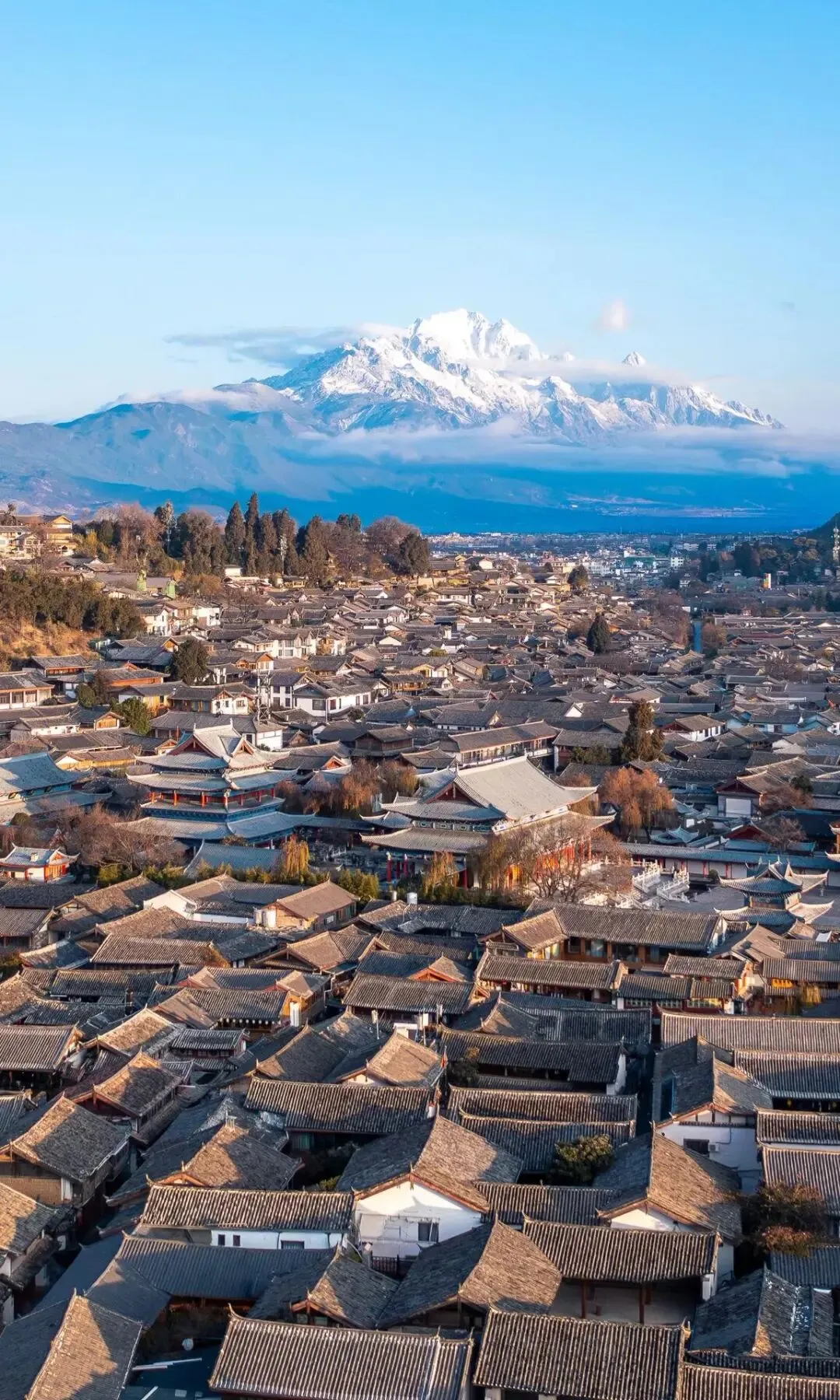 青石板路被岁月磨得发亮,巷子里飘着纳西族的烟火气。大水车吱呀转着,酒吧街的吉他声混着流水声,白天晒太阳喝茶,晚上听歌吹风。古城不大,却装着满满的风花雪月,每一步都能踩进柔软的旧时光里。