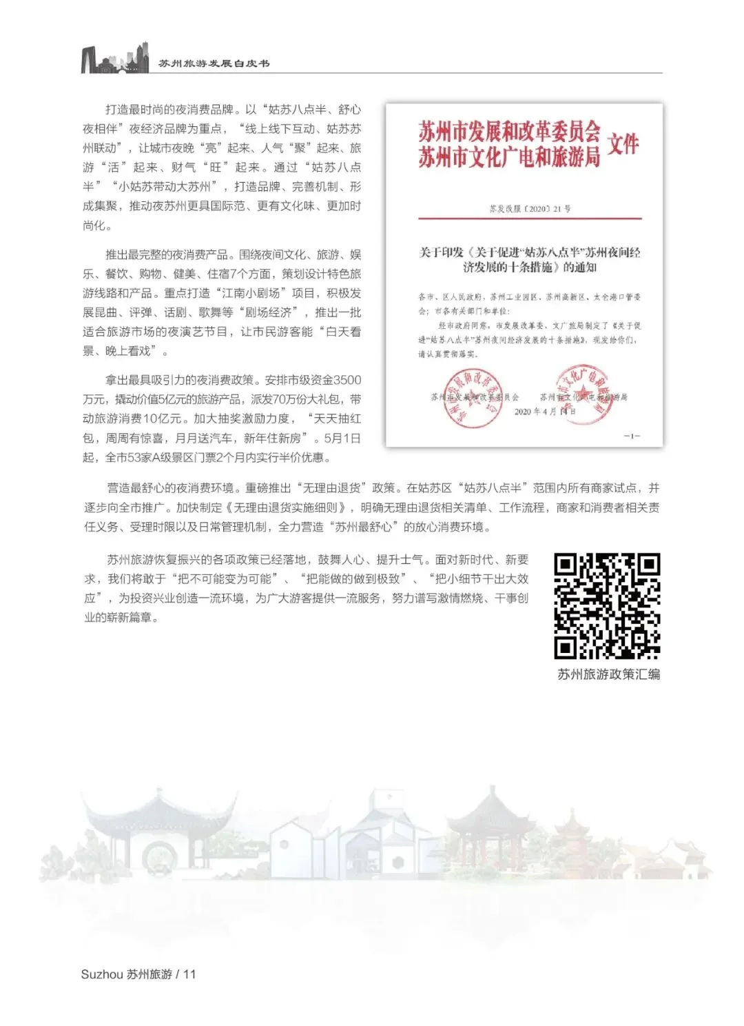整体而言,白皮书全面展现了苏州旅游业 “十三五” 的高质量发展成果,也体现了其面对疫情的快速应对能力和持续发展的韧性,明确了苏州以 “以文塑旅、以旅彰文” 为核心,建设 “现代国际大都市、美丽幸福新天堂”,打造国际一流文化旅游目的地的发展目标。