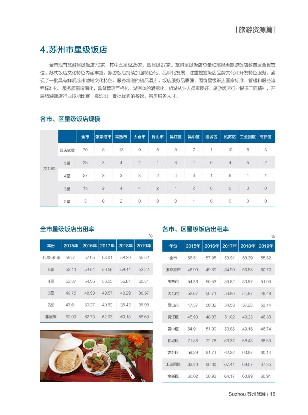 “十三五” 期间苏州旅游各项指标持续稳步提升:入境游客平均逗留天数增至 4.42 天,国内游客平均逗留天数达 2.22 天,旅游总收入从 2015 年 1863.6 亿元增至 2019 年 2751.02 亿元;姑苏区、吴中区、昆山市为国内旅游核心接待区域,工业园区是入境旅游接待主力。