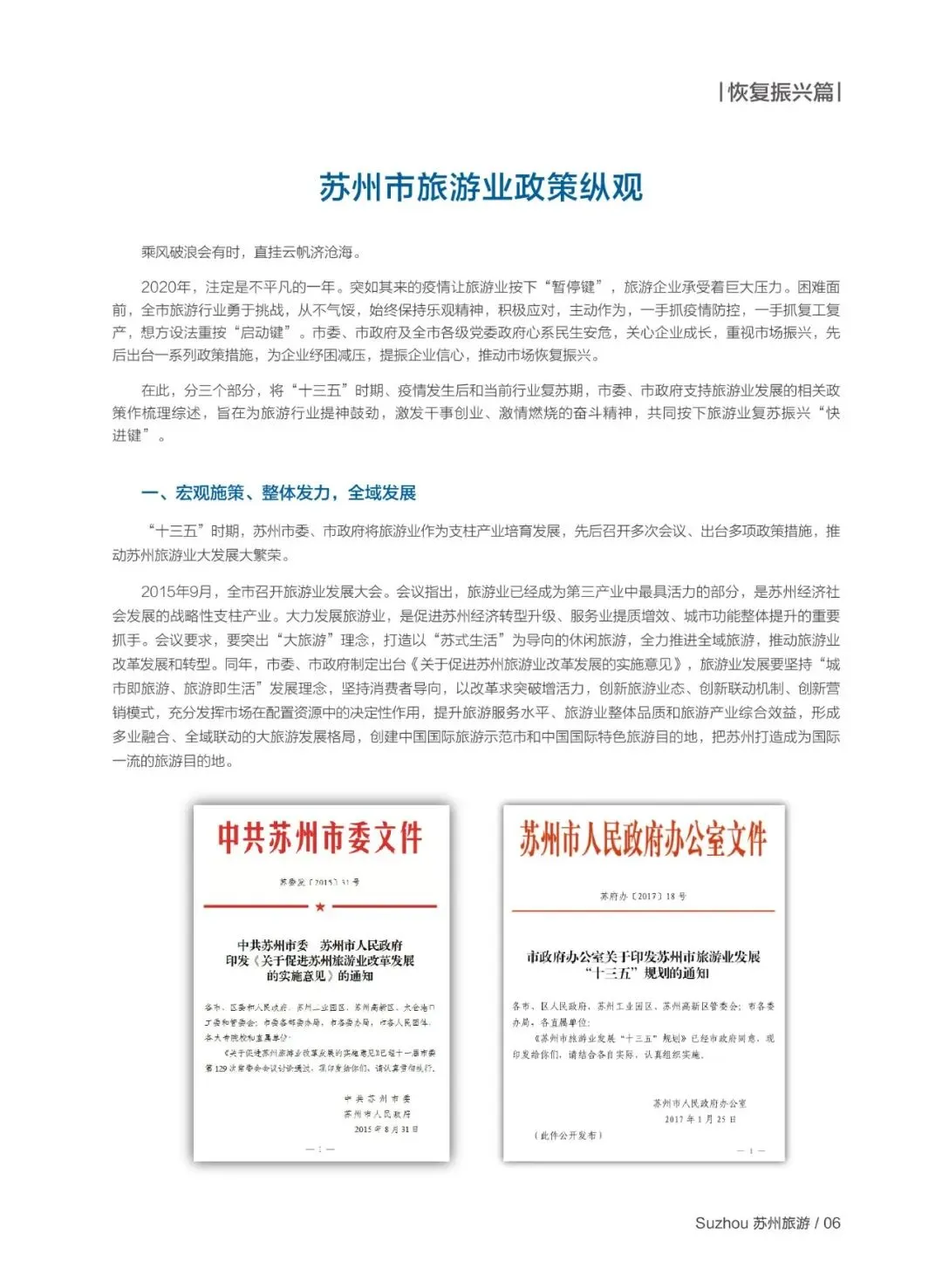 2020 年疫情对旅游业造成冲击后,苏州从宏观规划、纾困扶持、精准振兴三层出台系列政策: