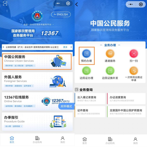 第一步:打开微信,搜索并进入“移民局”小程序