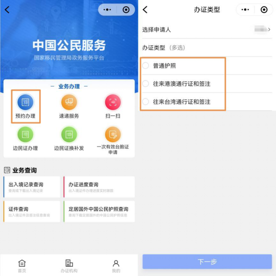 第四步:再次点击“预约办理”,选择“办证类型”,点击下一步