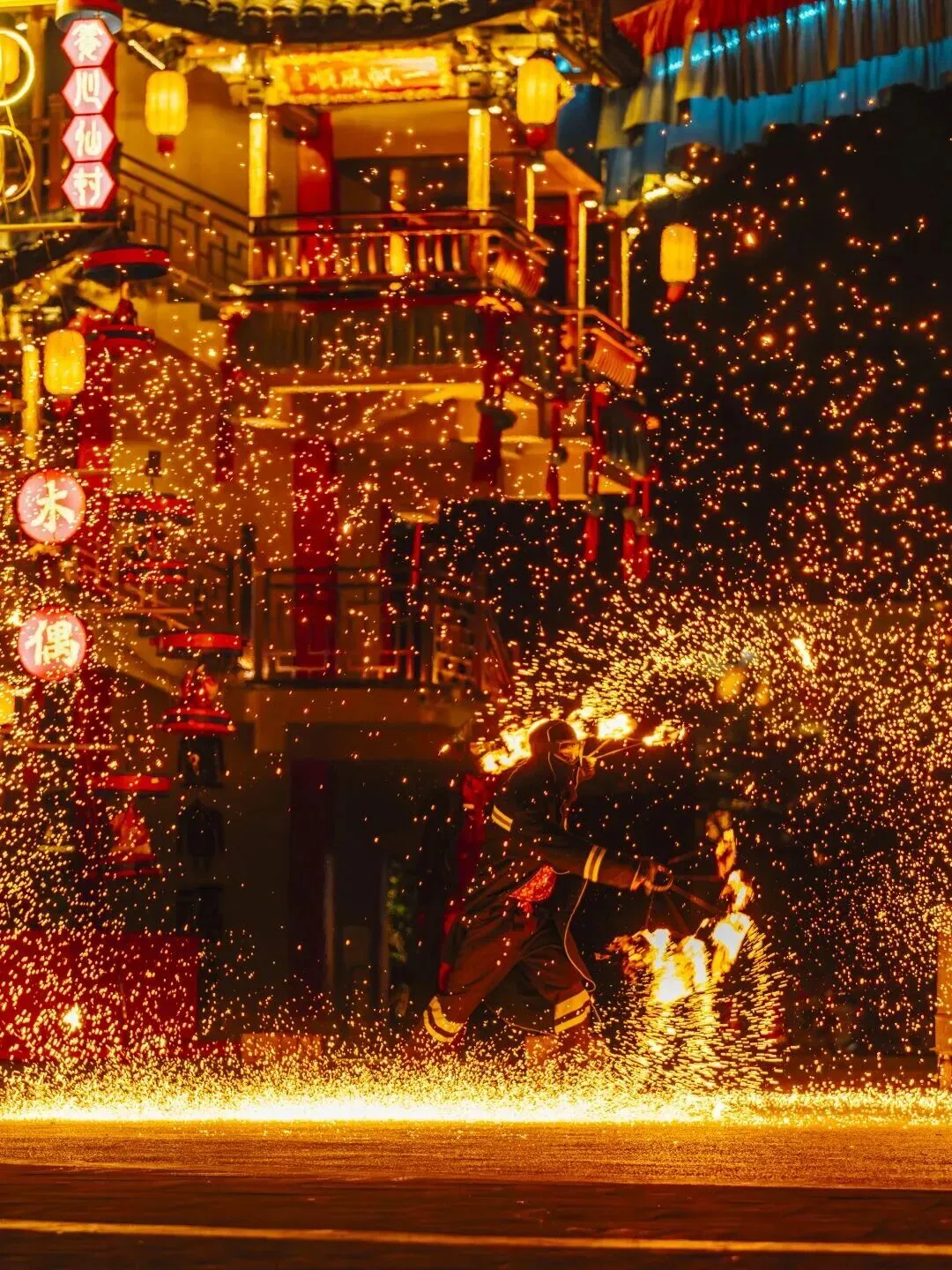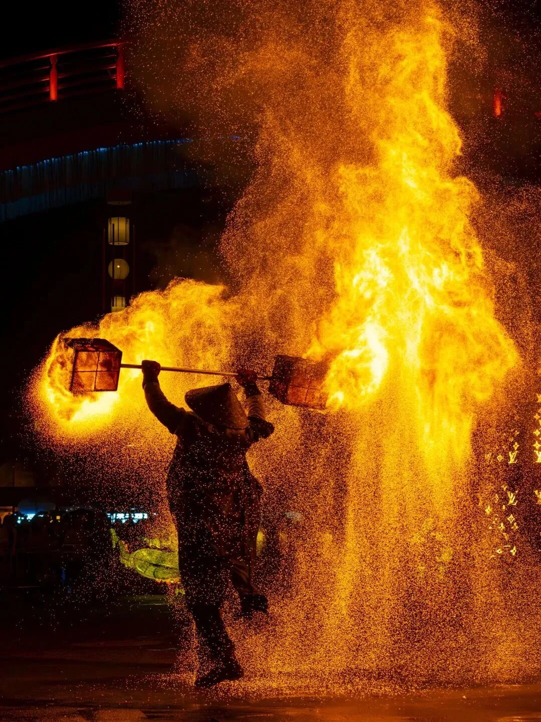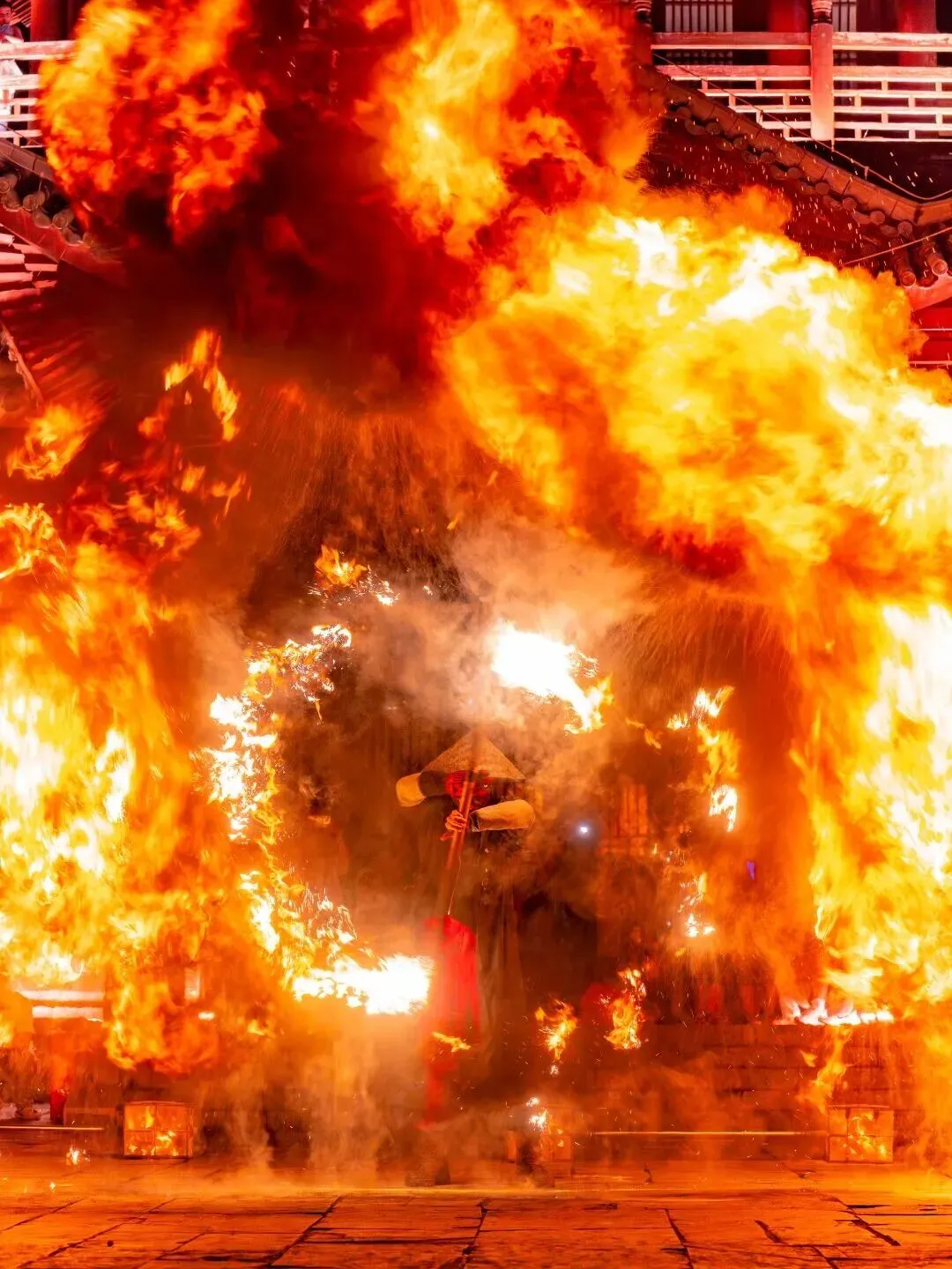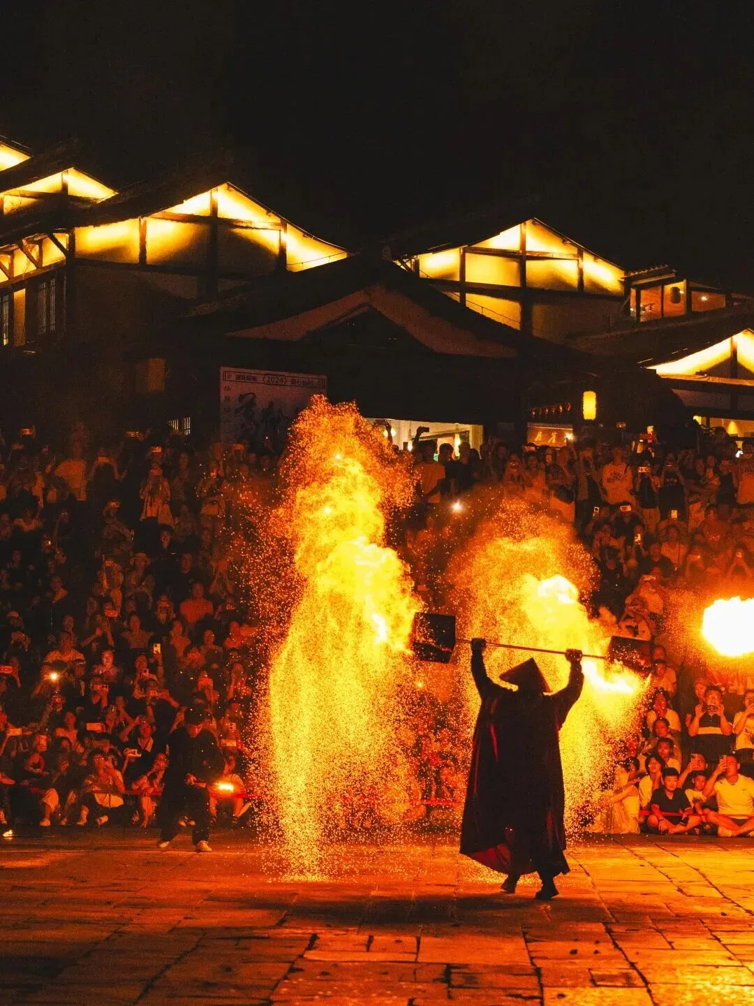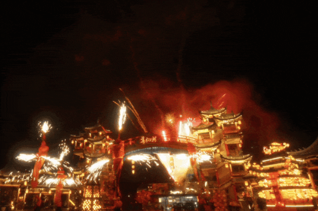 夜幕降临,葛仙村里的夜更加绚丽。一场场火焰绝技轮番登场,火裙、火壶、火立方、九龙火炮......现场沸腾,来葛仙村一起玩到“上头”!