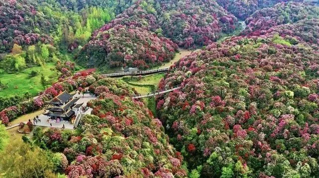 毕节百里杜鹃 , 名字没夸张 , 真的是一片一片的花海 , 世界最大的原始杜鹃林 , 号称"地球彩带"。 3月底到5月初是花期 , 清明去正好赶上最盛的时候。 普底景区和金坡景区选一个就行 , 体力好两个都走也不累。